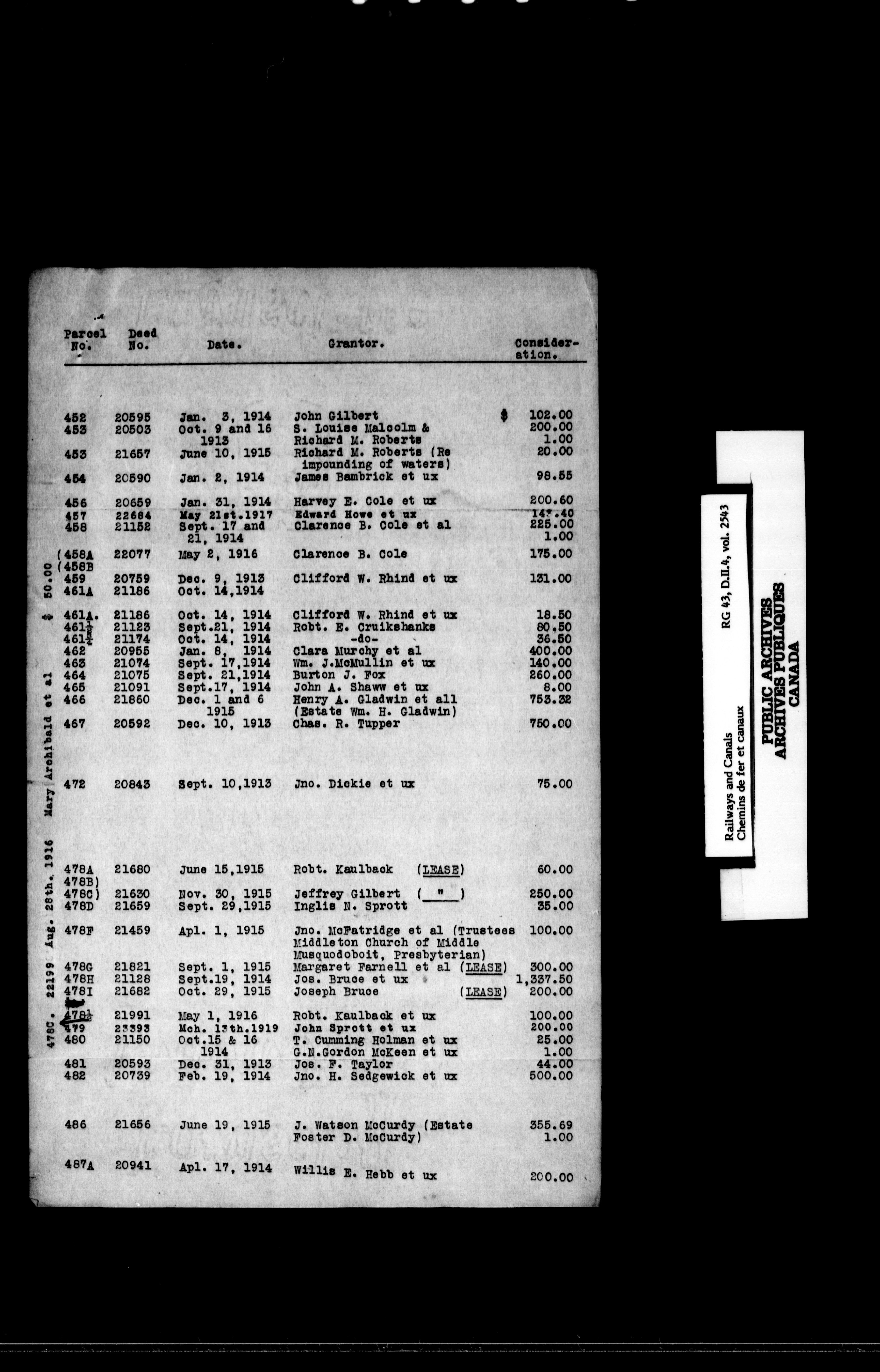 Department of Railways and Canals, Legal records : Agreement Registers - 7227