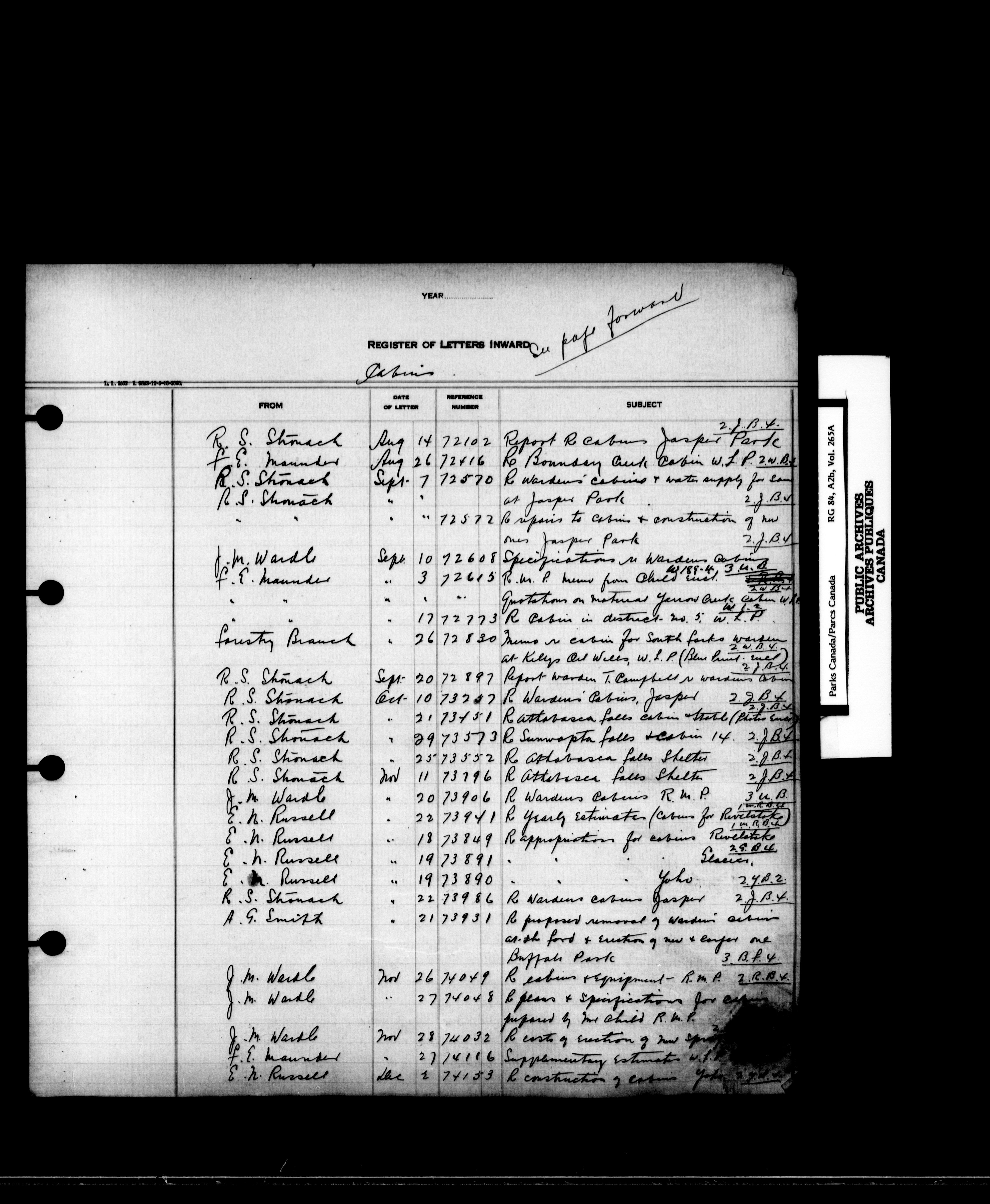 Dominion Parks Branch central registry system : Registers of incoming letters - 7228