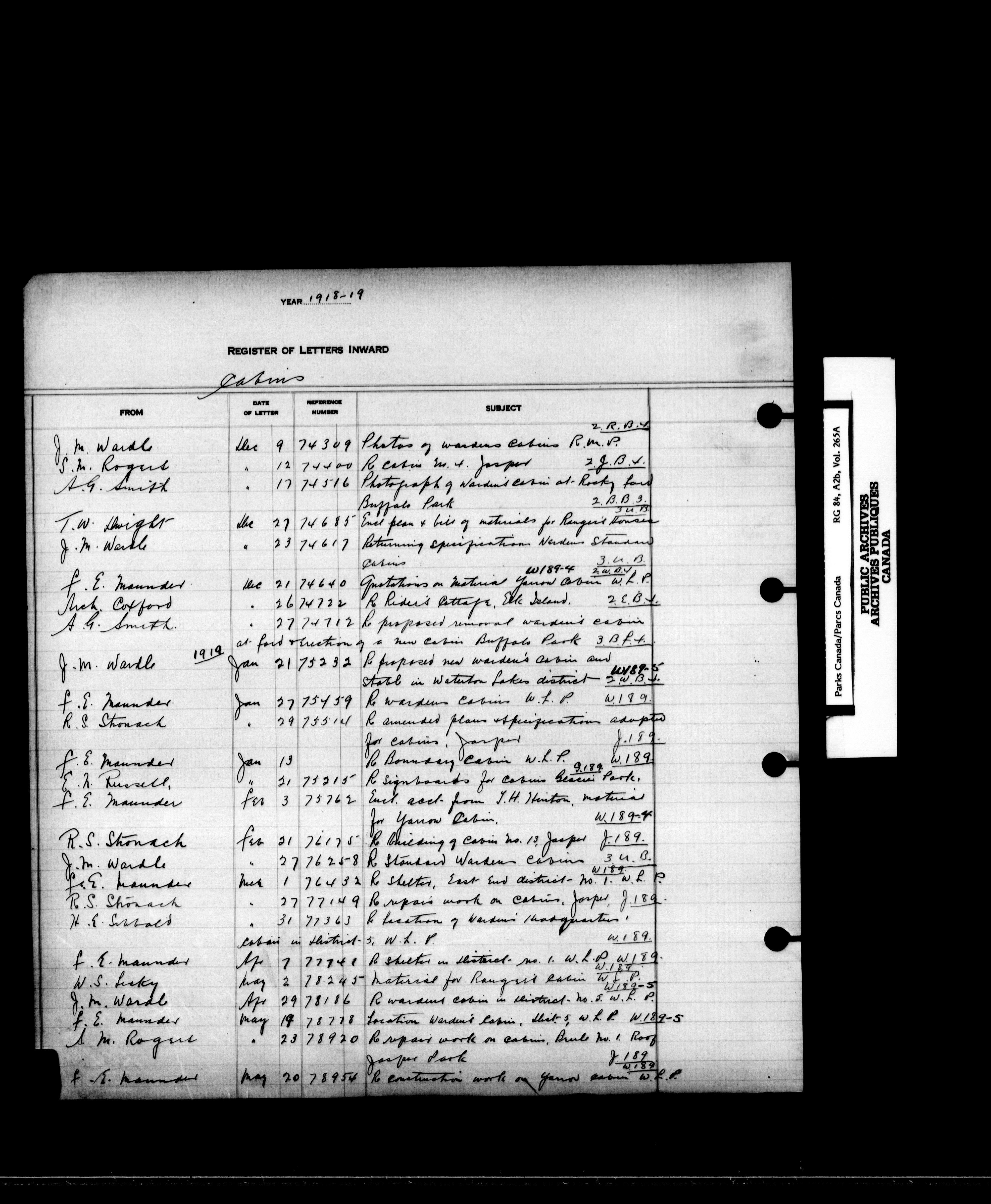 Dominion Parks Branch central registry system : Registers of incoming letters - 7228