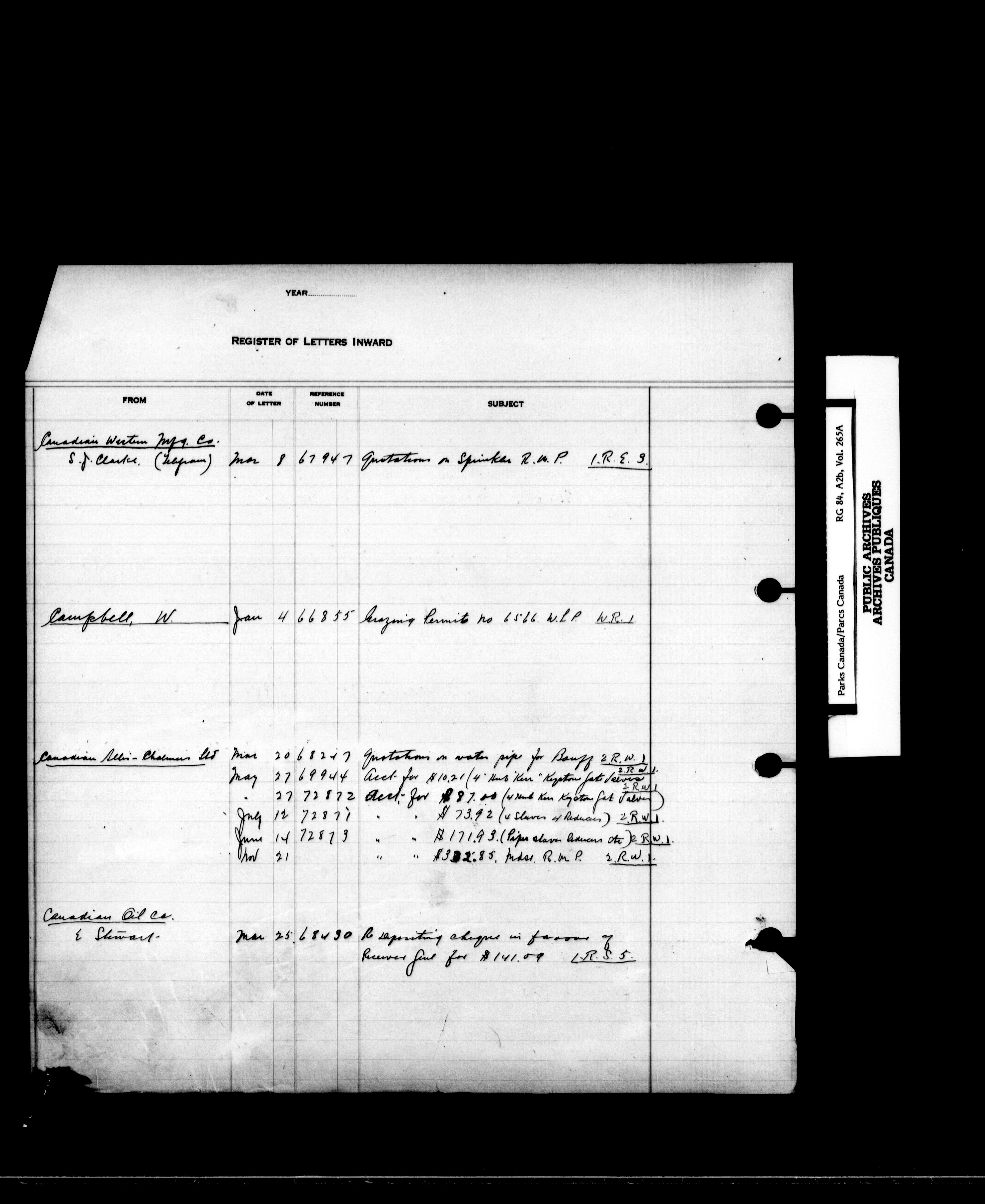 Dominion Parks Branch central registry system : Registers of incoming letters - 7228