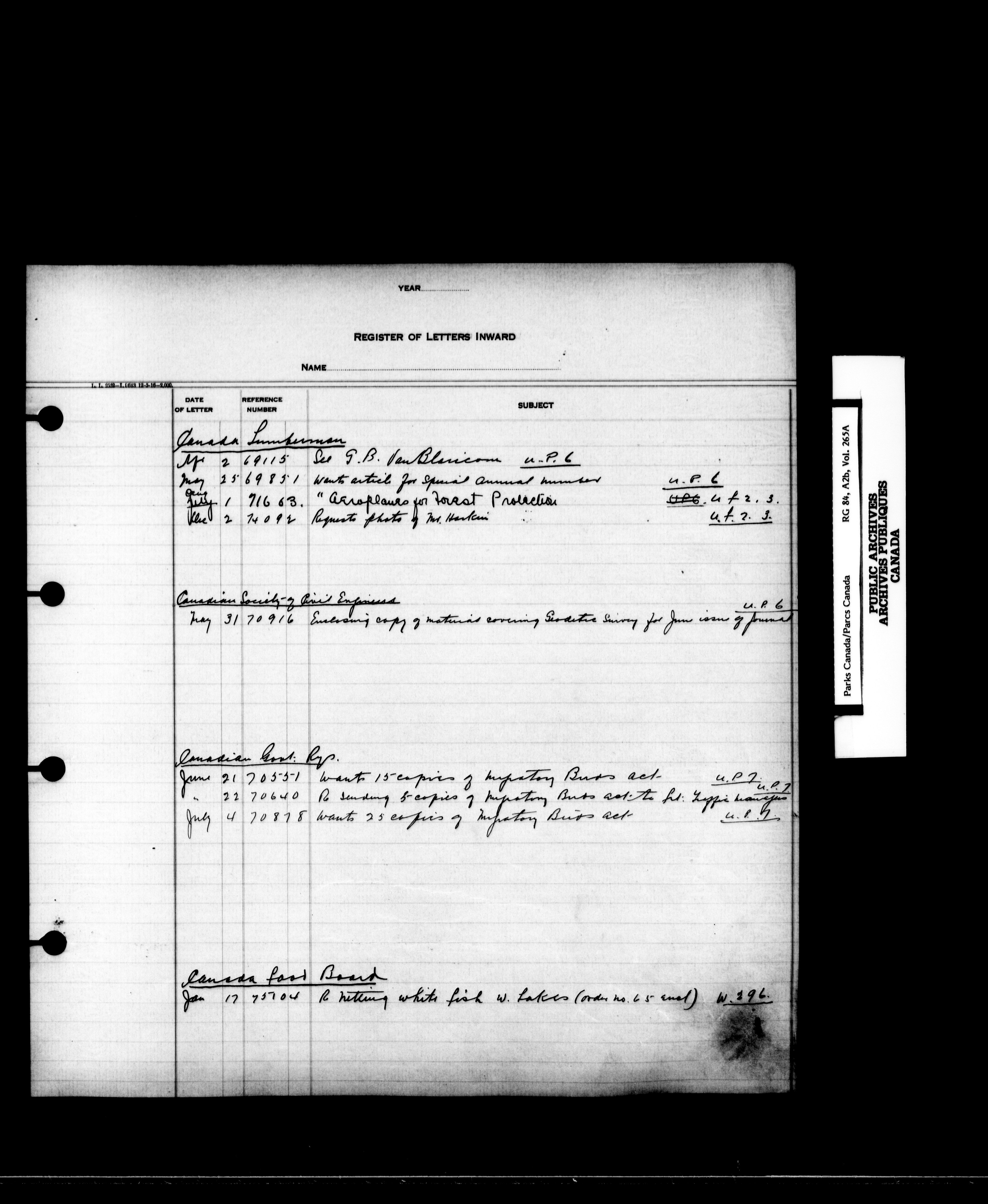 Dominion Parks Branch central registry system : Registers of incoming letters - 7228
