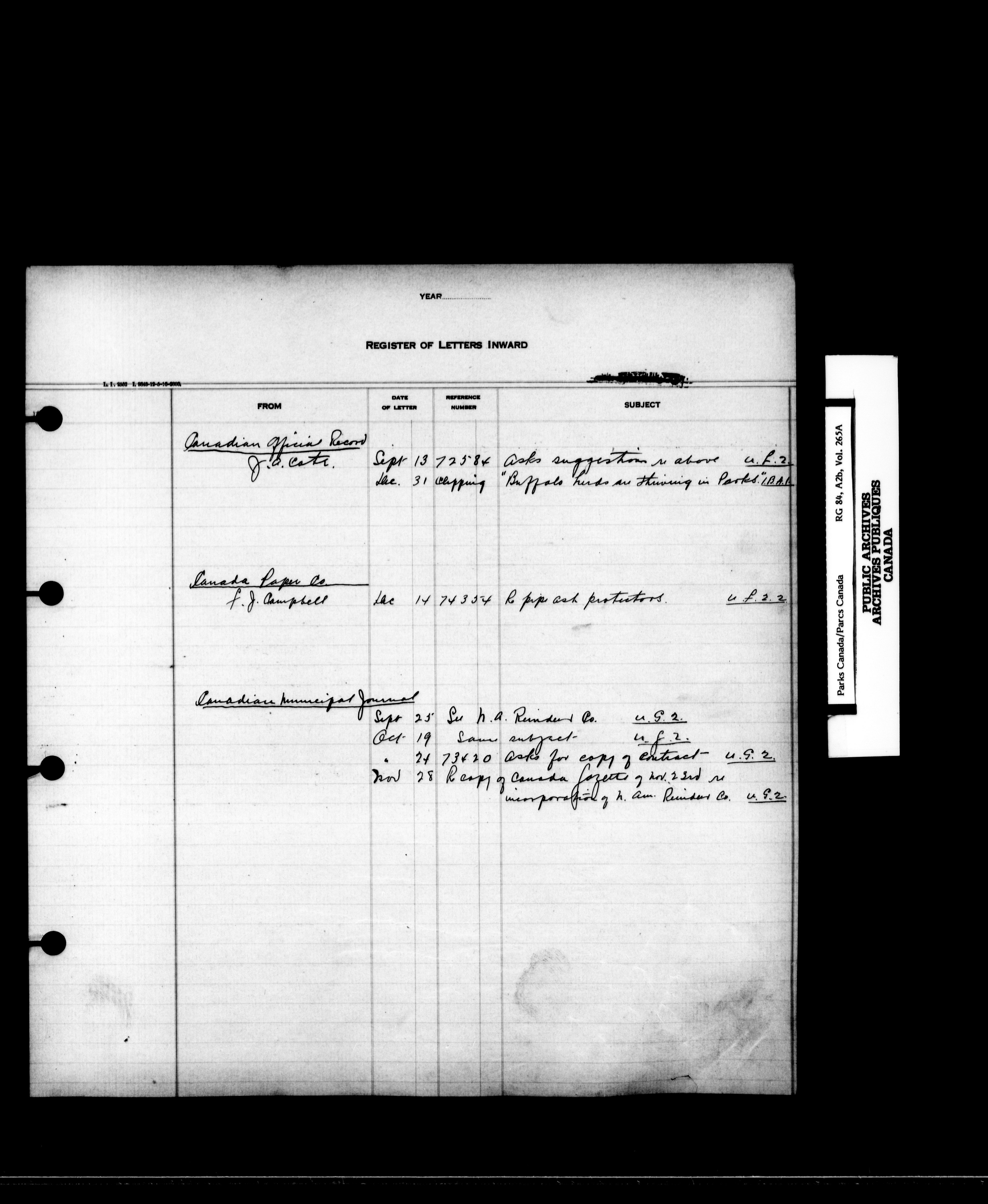 Dominion Parks Branch central registry system : Registers of incoming letters - 7228