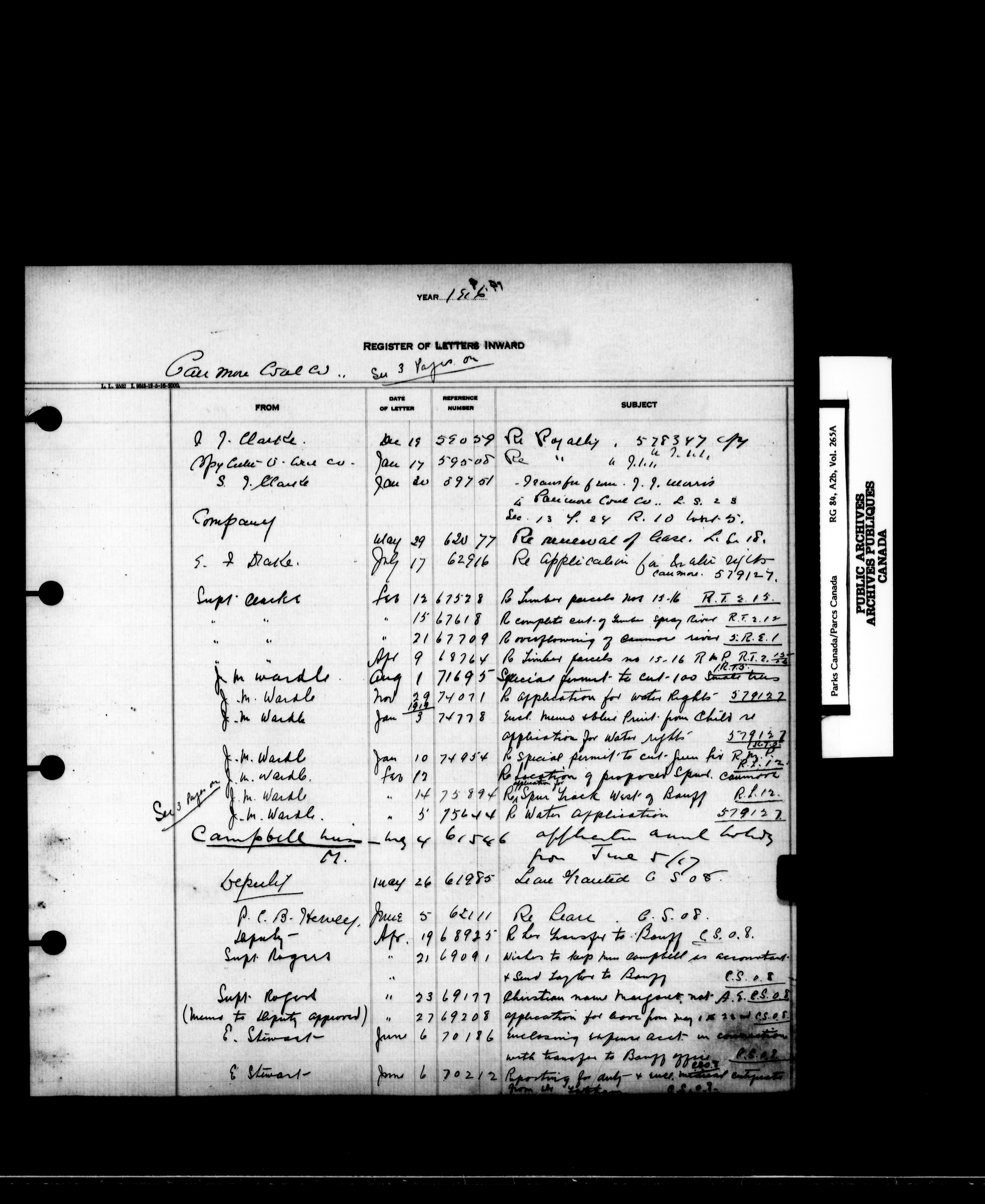 Dominion Parks Branch central registry system : Registers of incoming letters - 7228