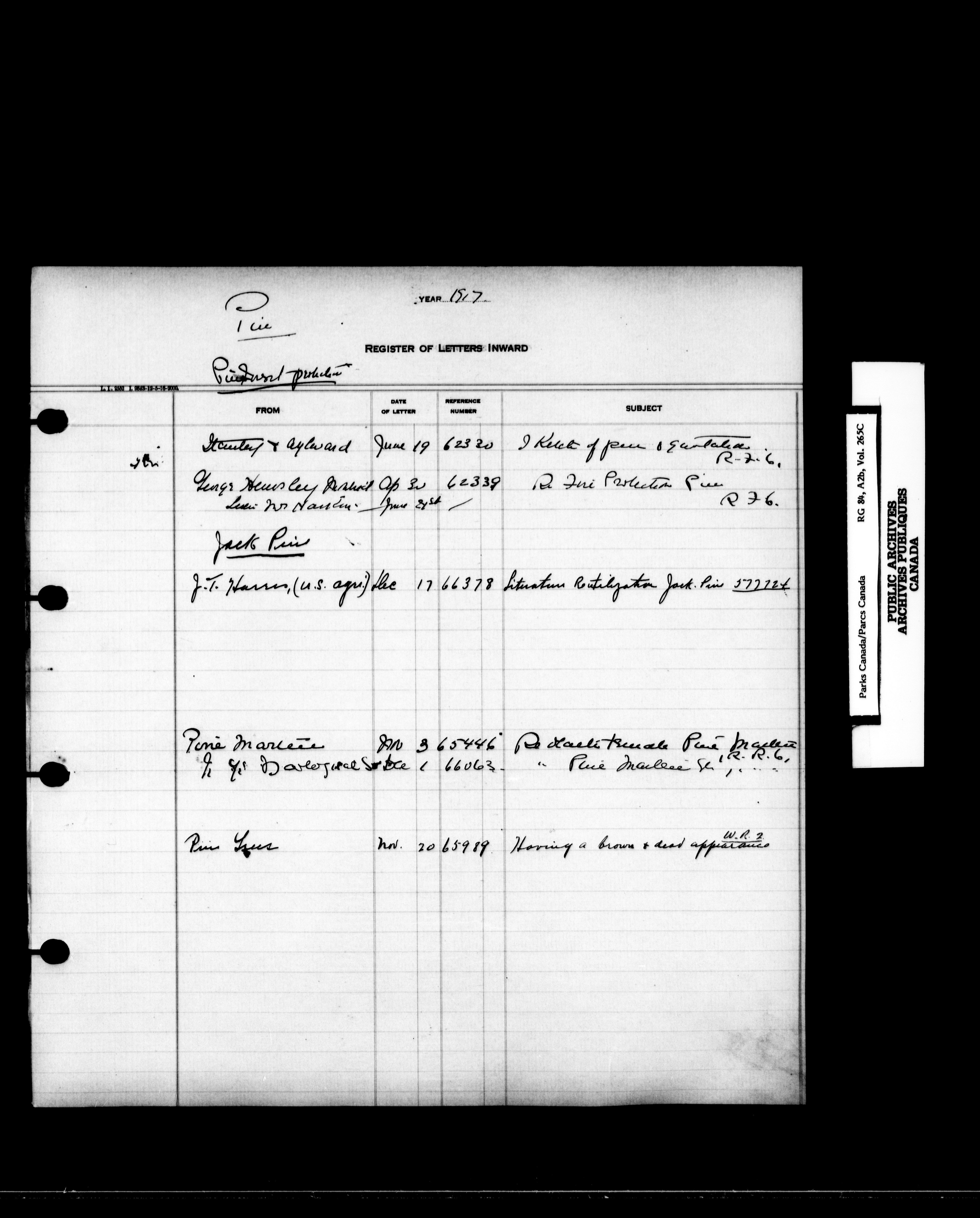 Dominion Parks Branch central registry system : Registers of incoming letters - 7229