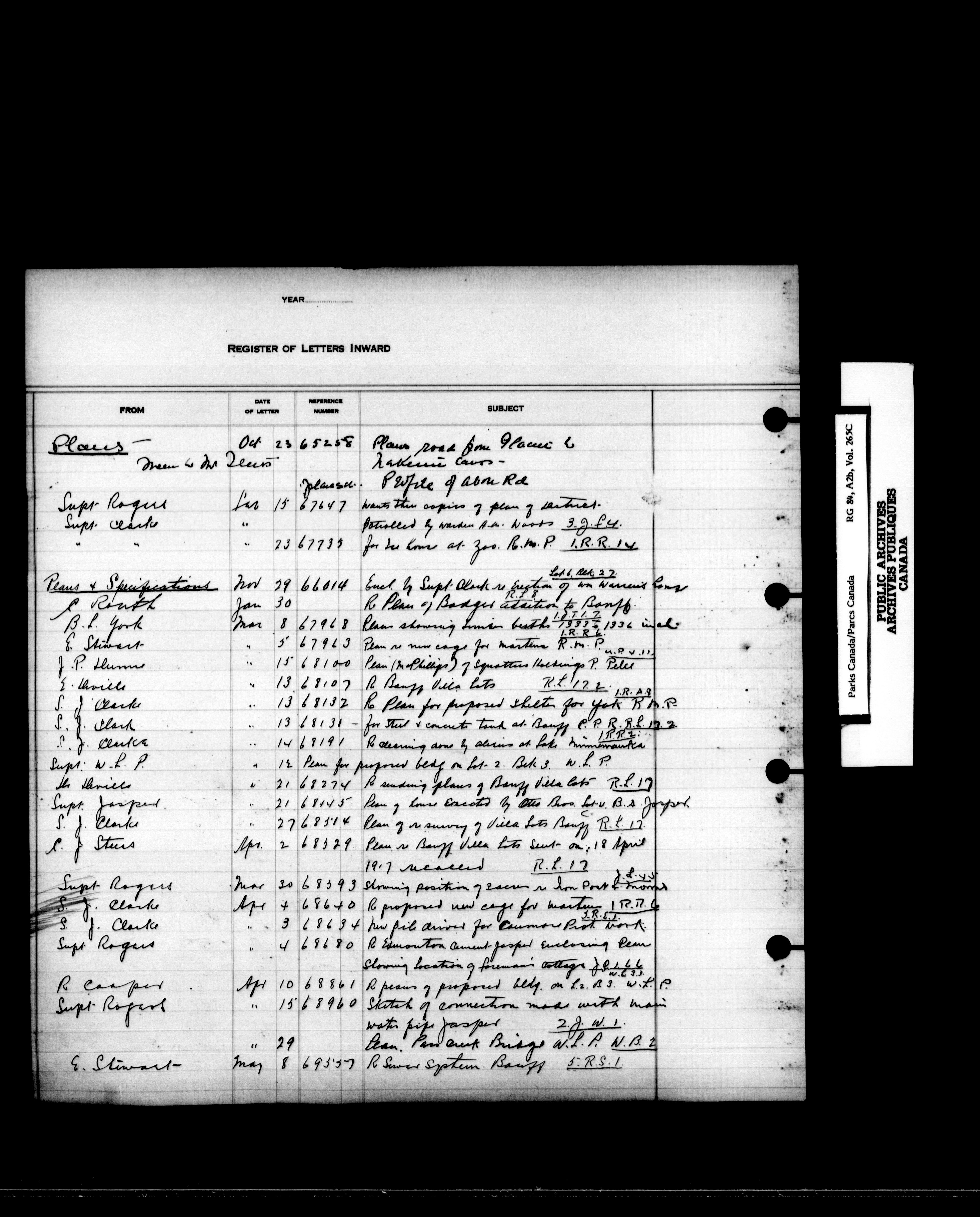 Dominion Parks Branch central registry system : Registers of incoming letters - 7229