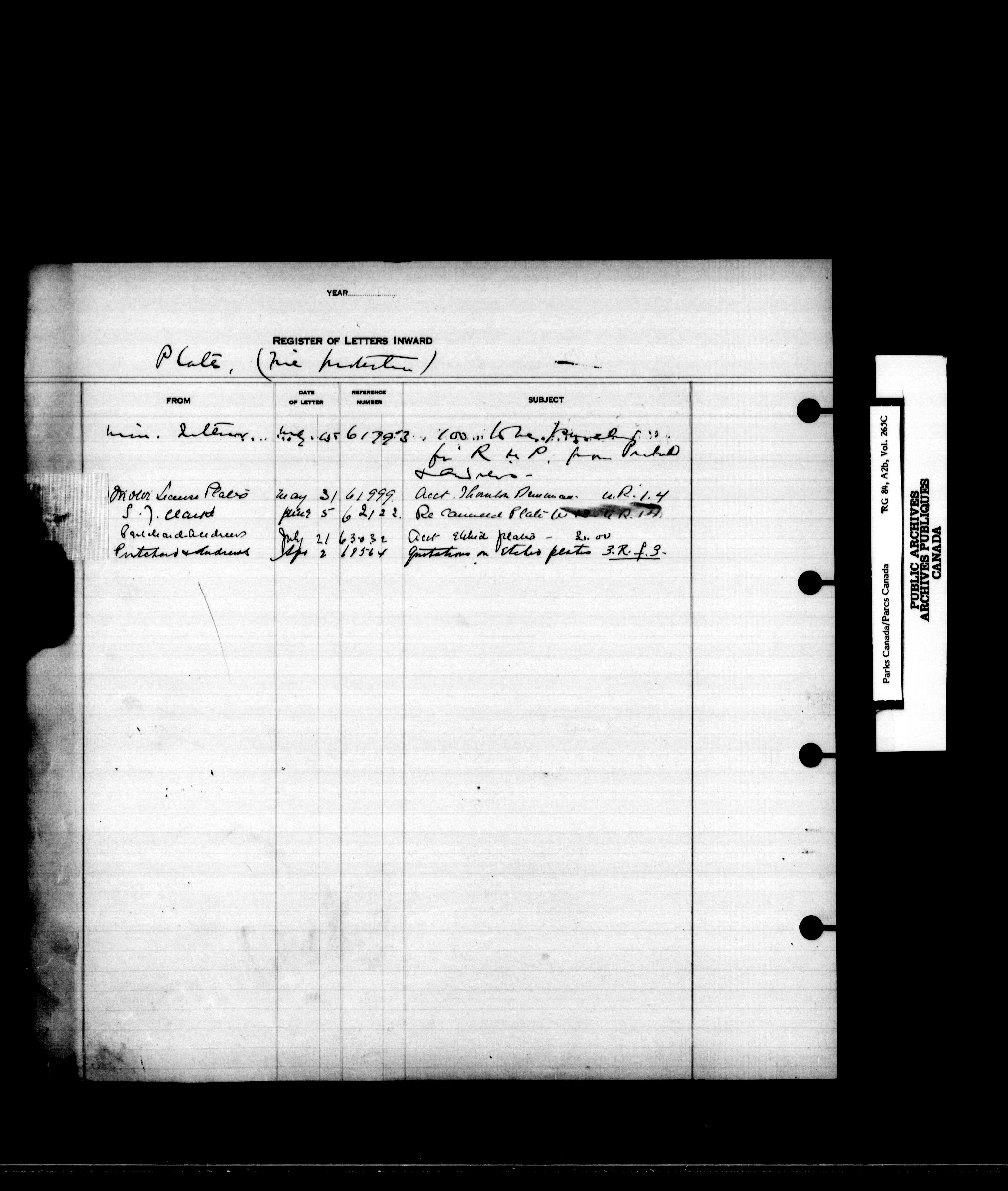 Dominion Parks Branch central registry system : Registers of incoming letters - 7229