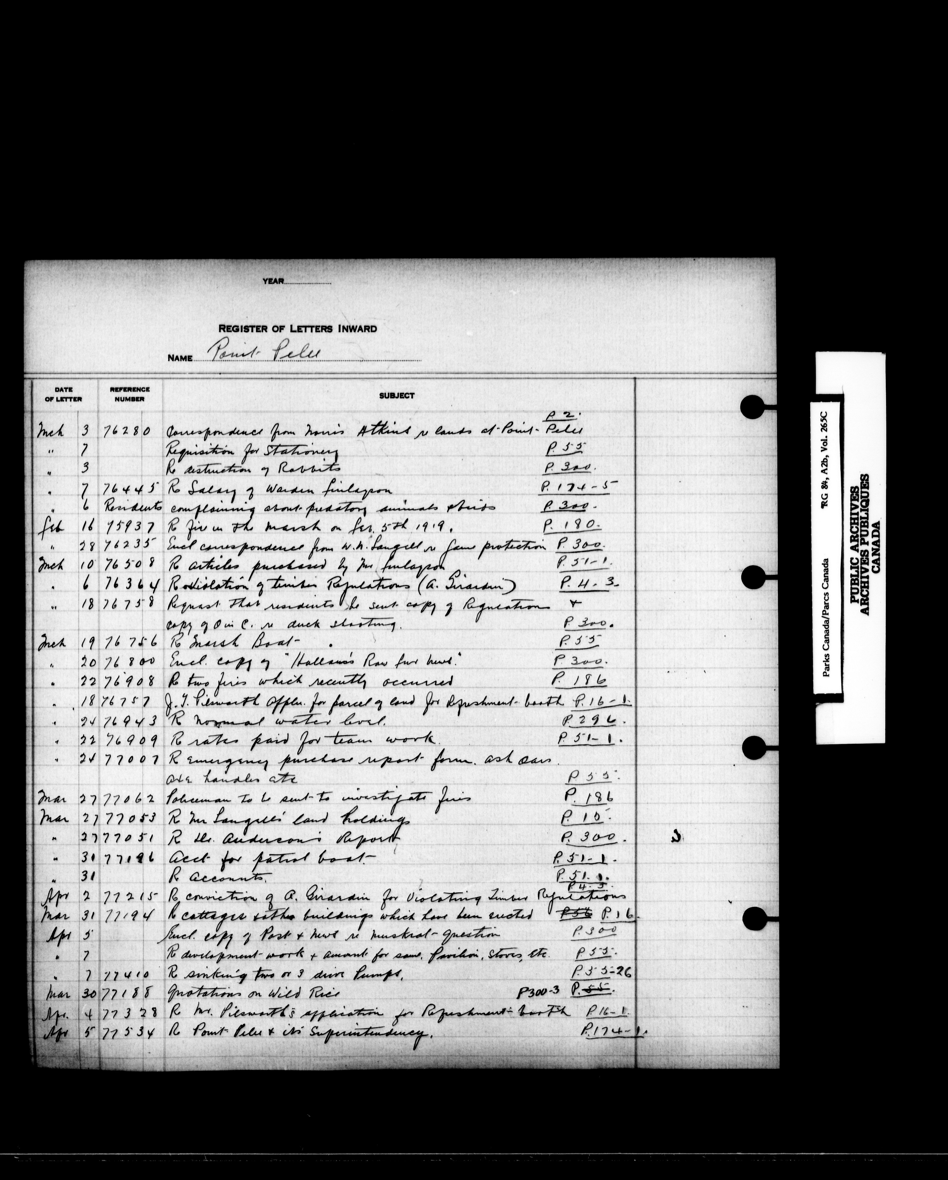 Dominion Parks Branch central registry system : Registers of incoming letters - 7229