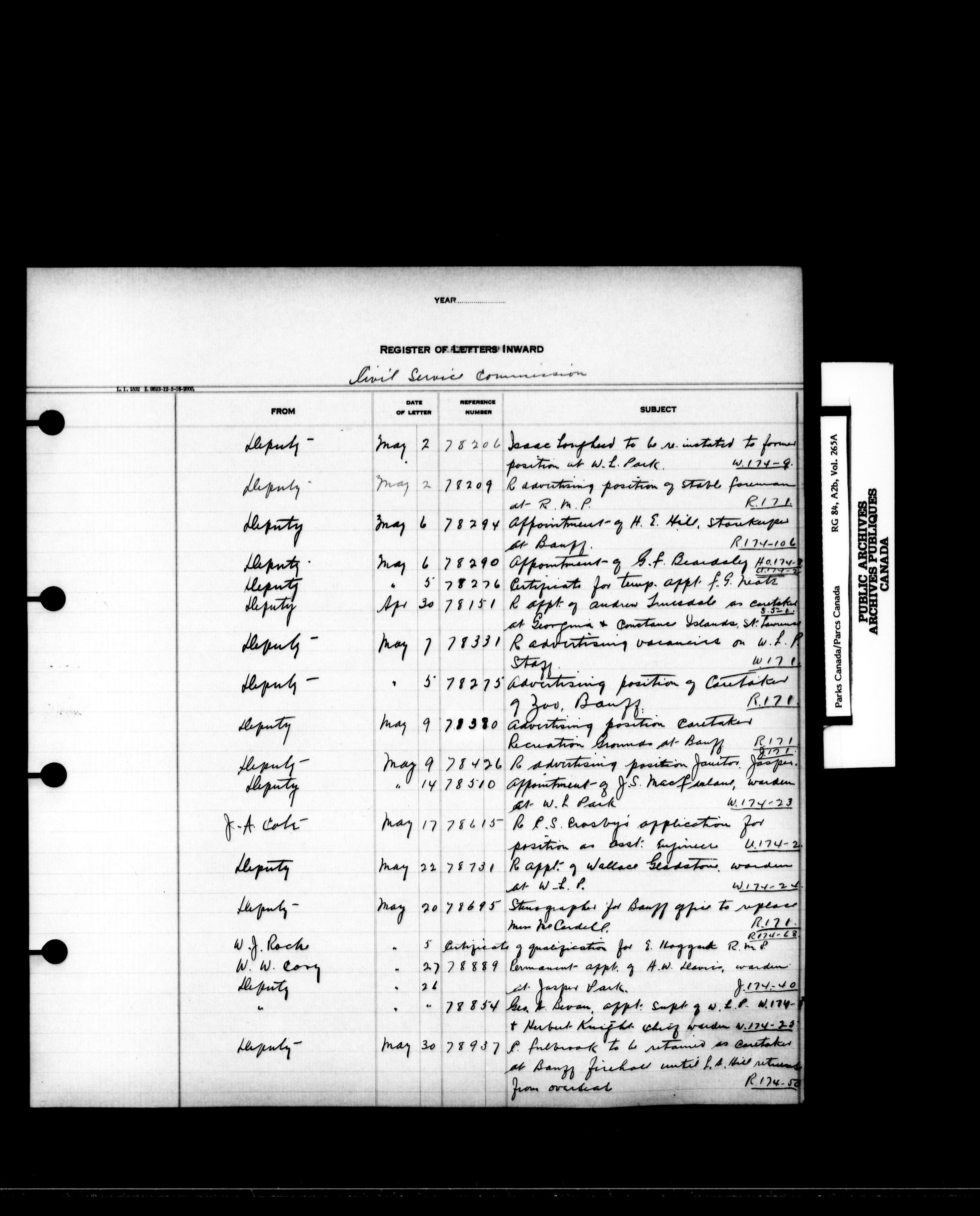 Dominion Parks Branch central registry system : Registers of incoming letters - 7229