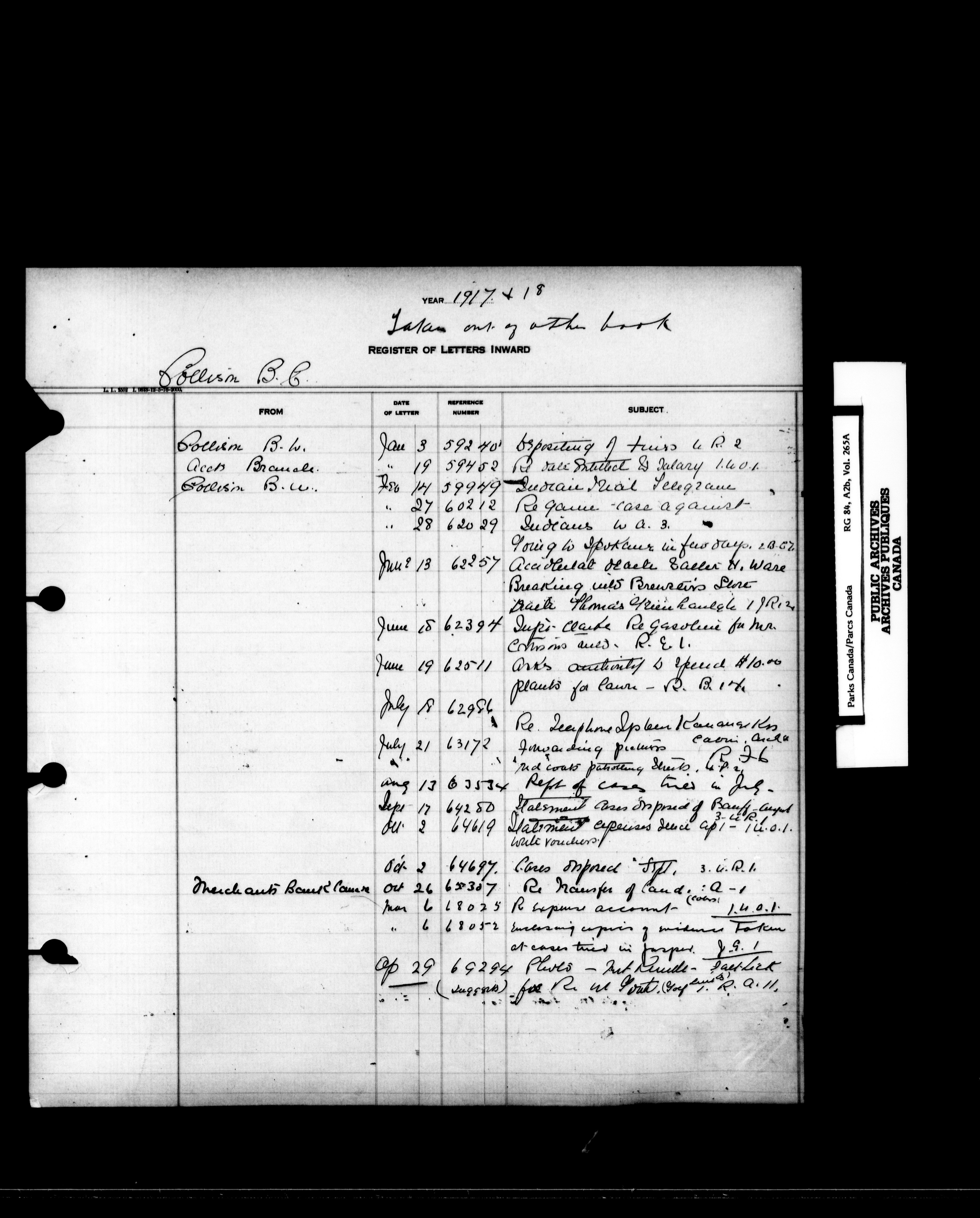 Dominion Parks Branch central registry system : Registers of incoming letters - 7229
