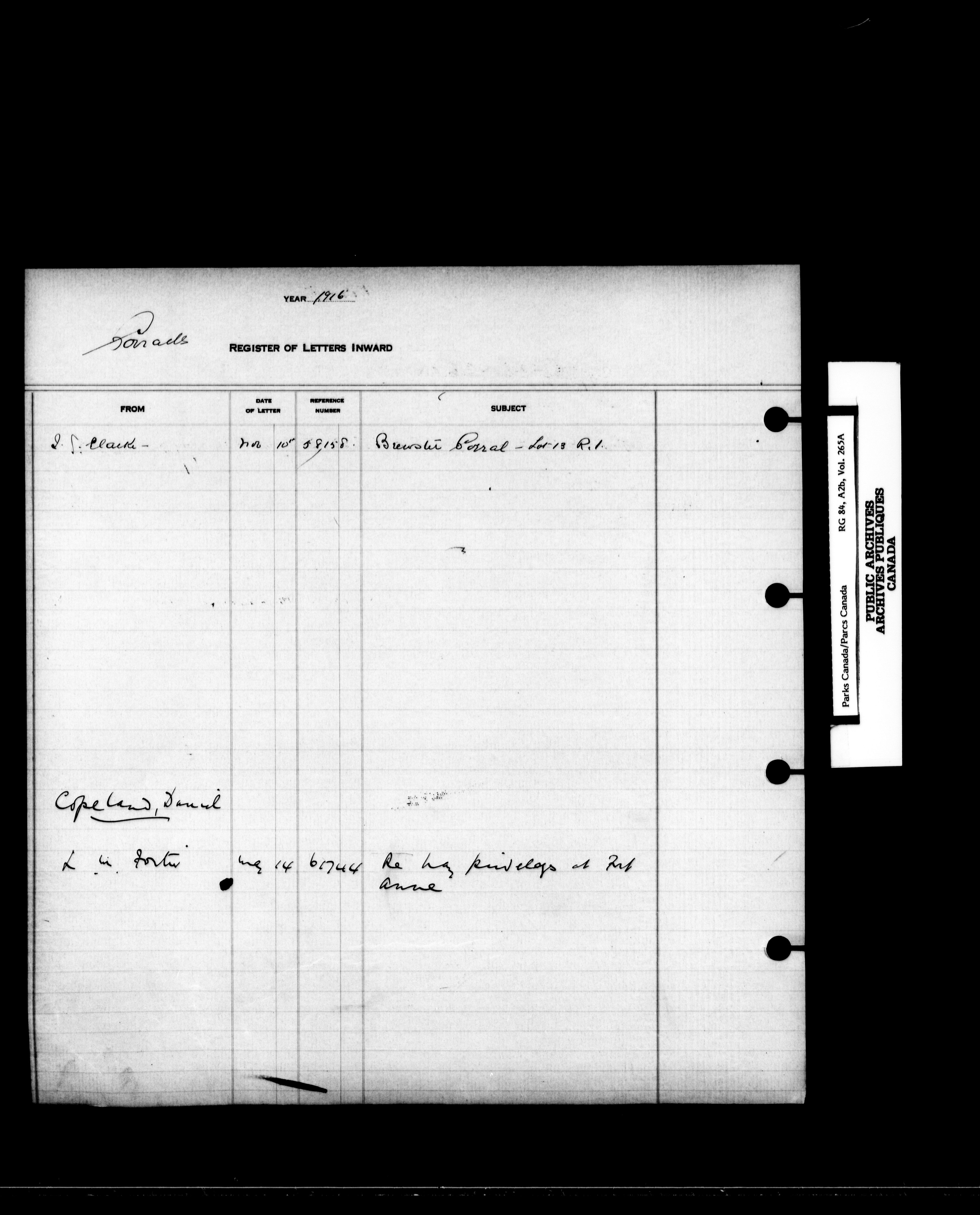 Dominion Parks Branch central registry system : Registers of incoming letters - 7229