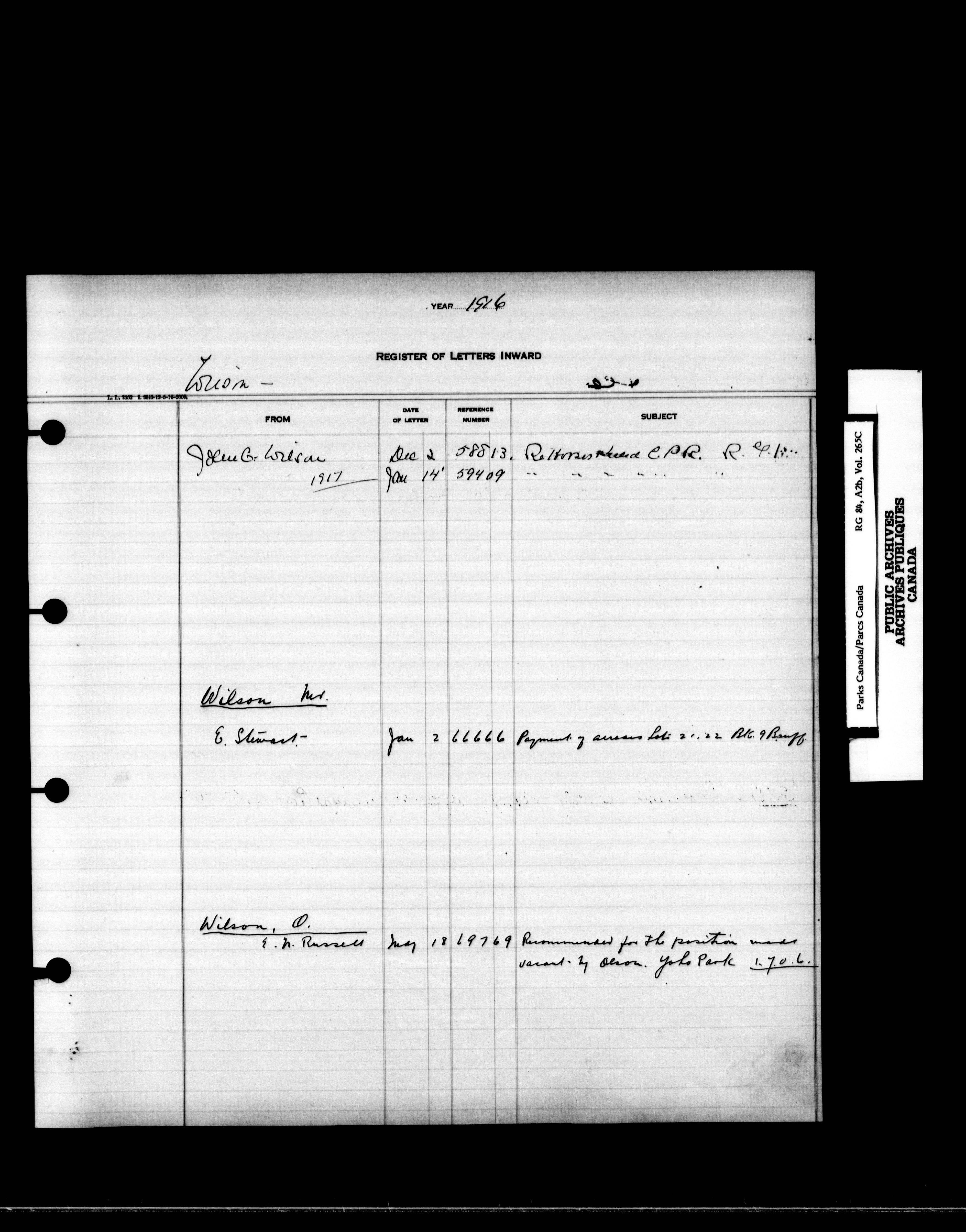 Dominion Parks Branch central registry system : Registers of incoming letters - 7230