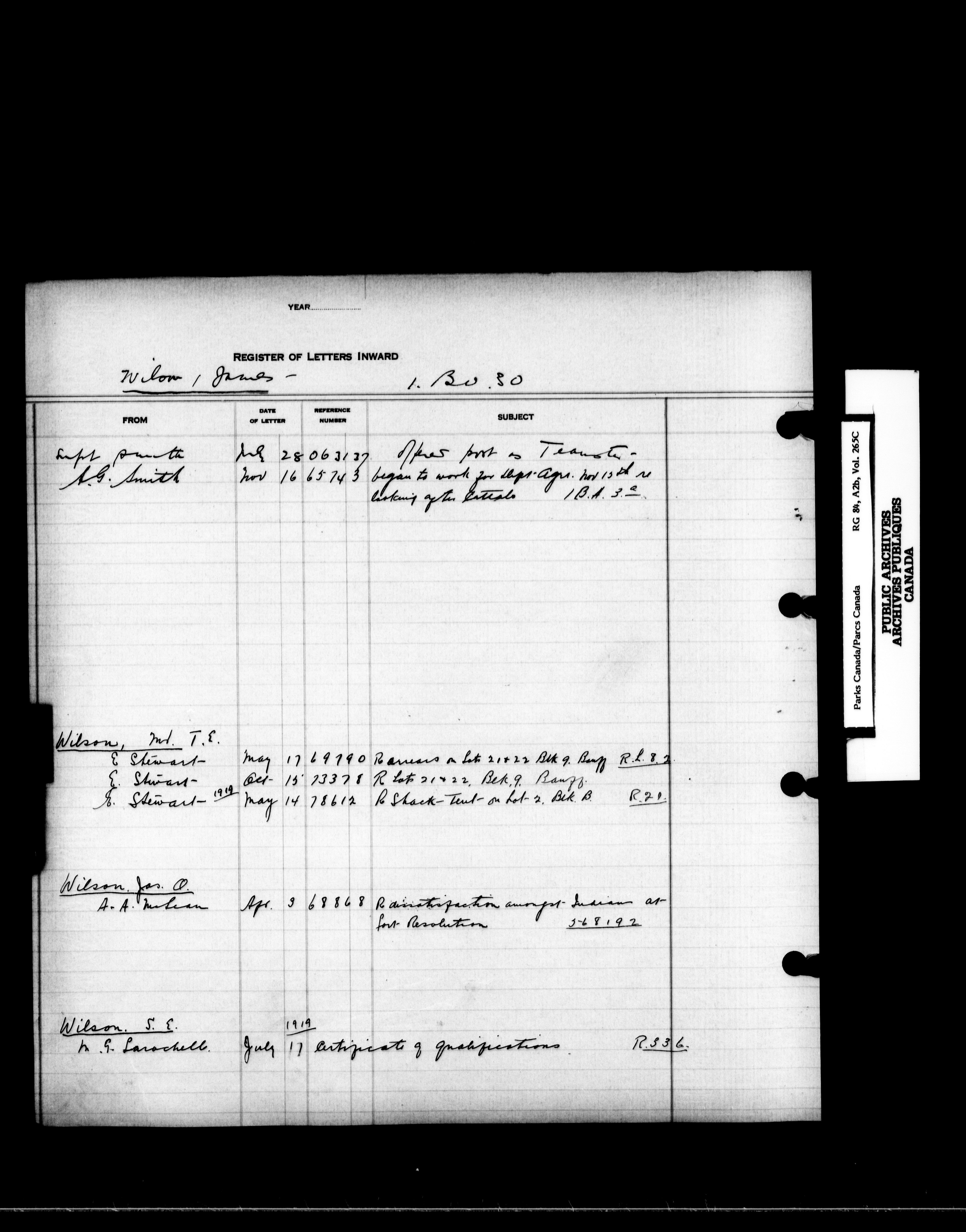 Dominion Parks Branch central registry system : Registers of incoming letters - 7230