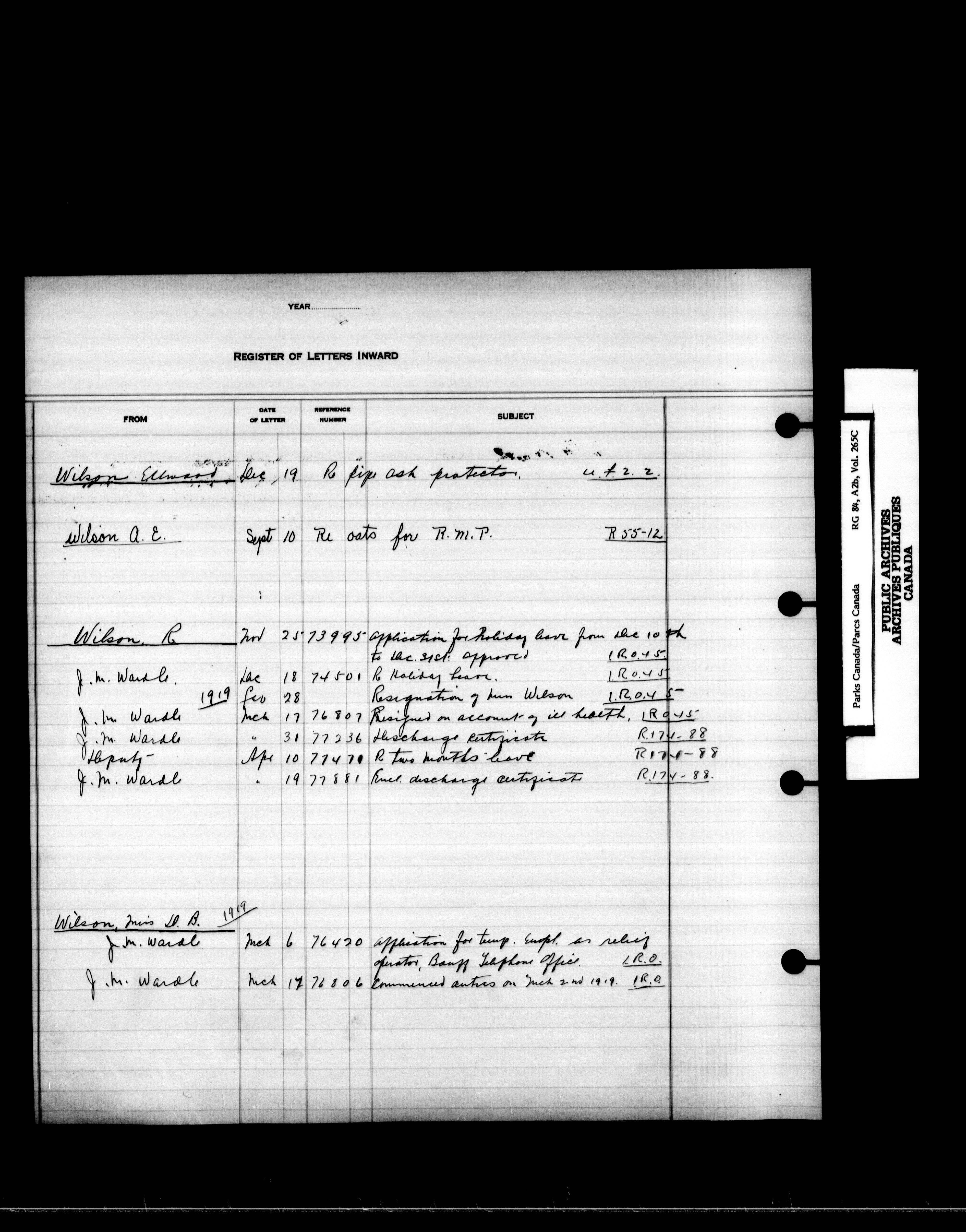 Dominion Parks Branch central registry system : Registers of incoming letters - 7230