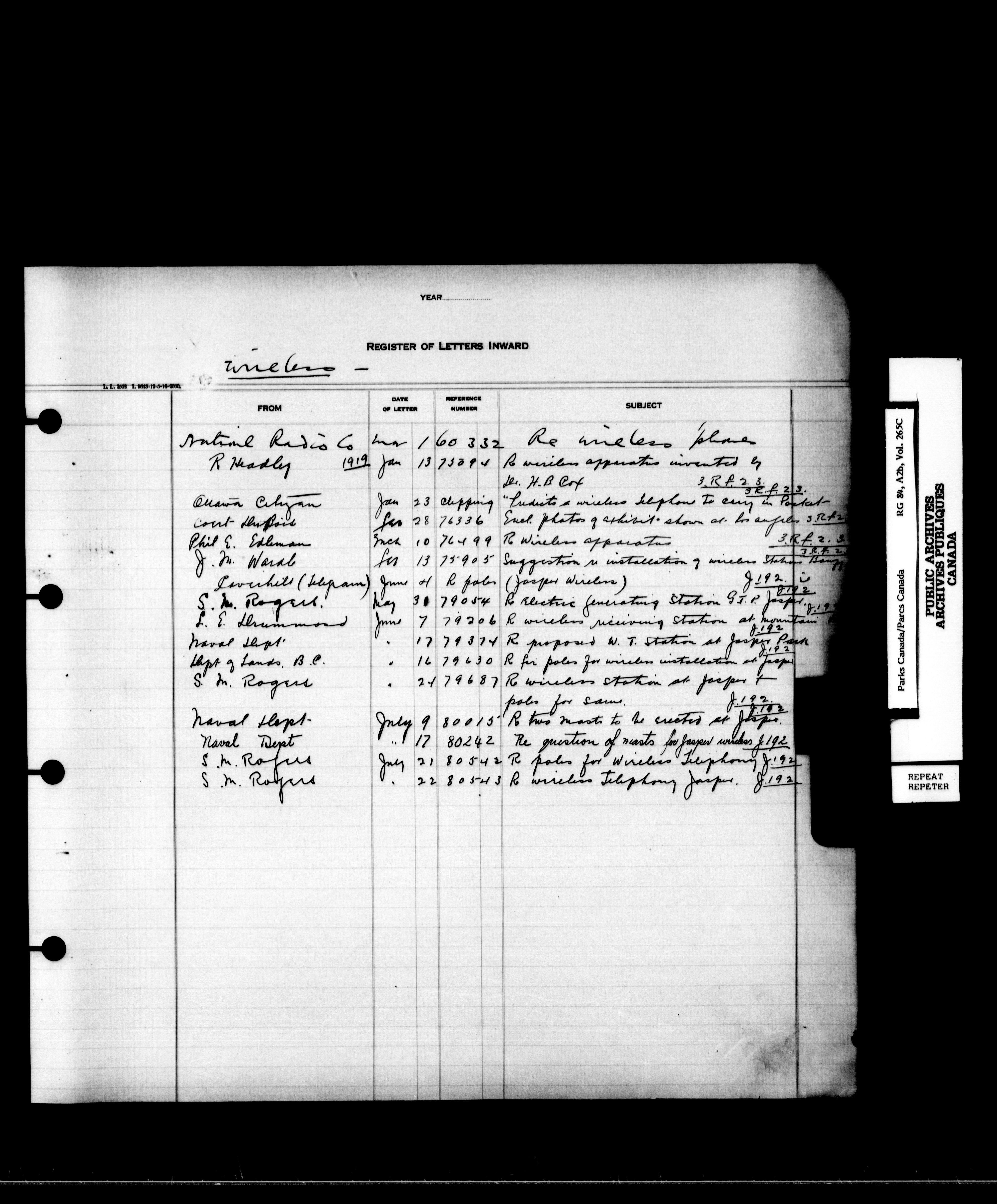 Dominion Parks Branch central registry system : Registers of incoming letters - 7230