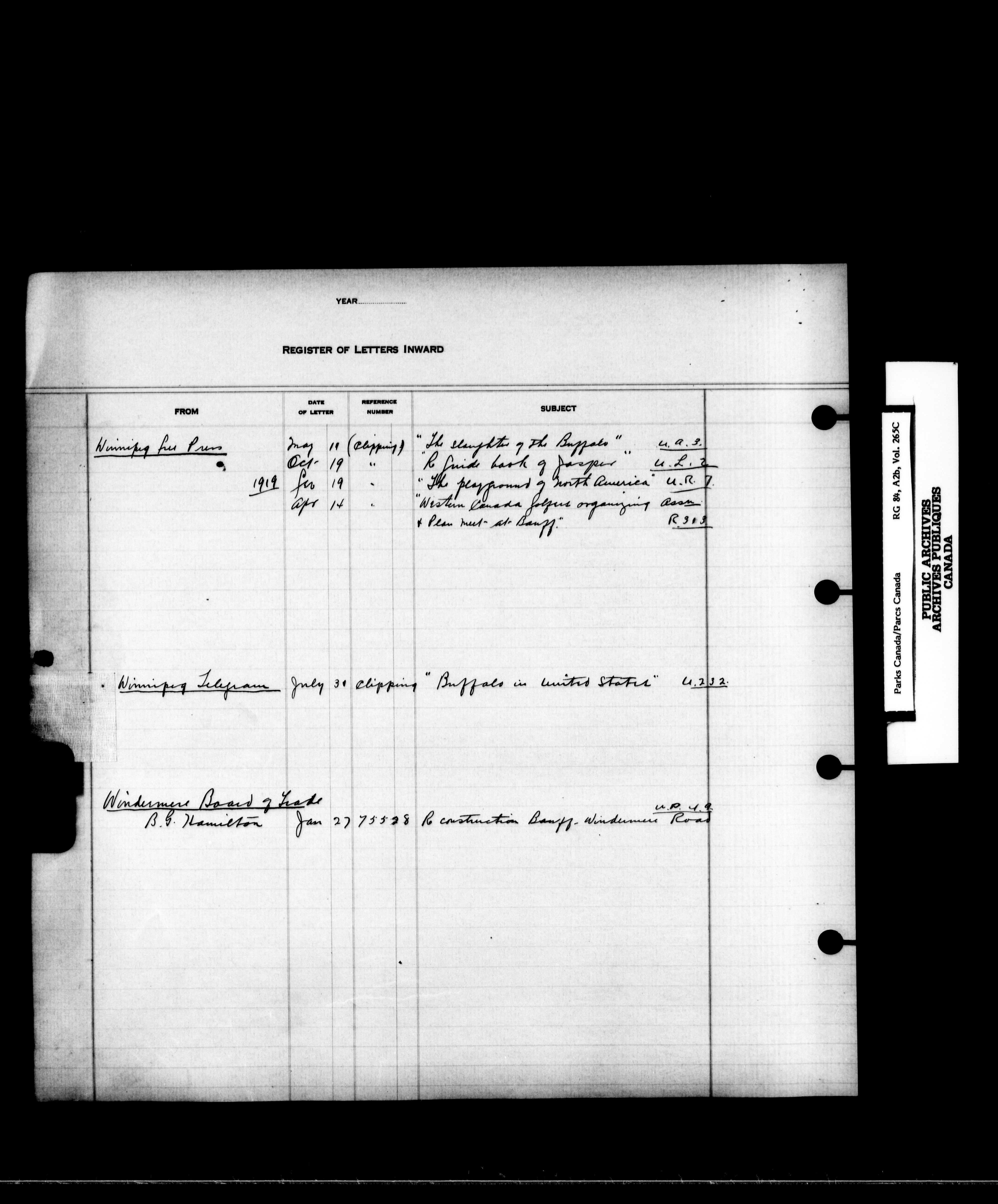 Dominion Parks Branch central registry system : Registers of incoming letters - 7230