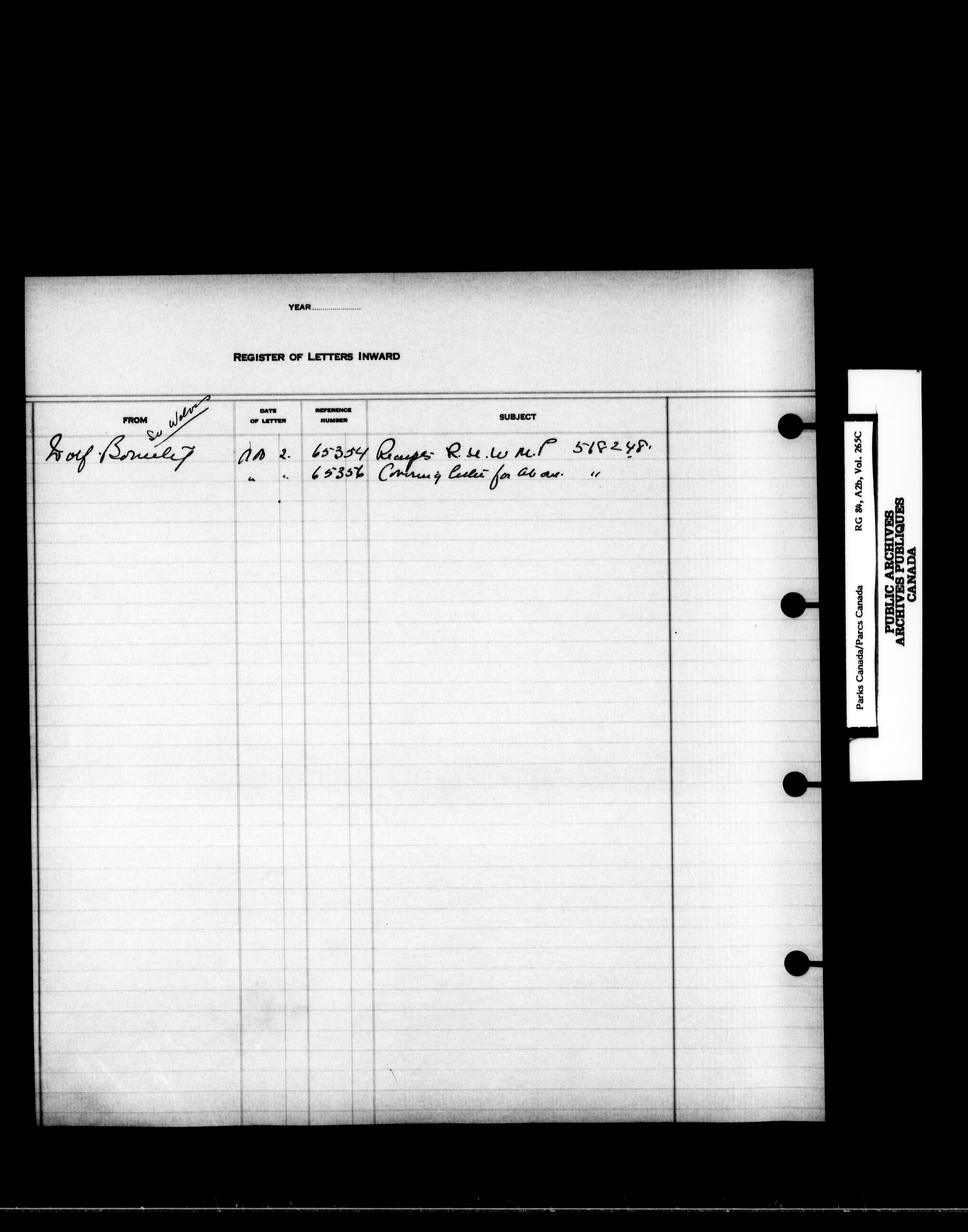 Dominion Parks Branch central registry system : Registers of incoming letters - 7230