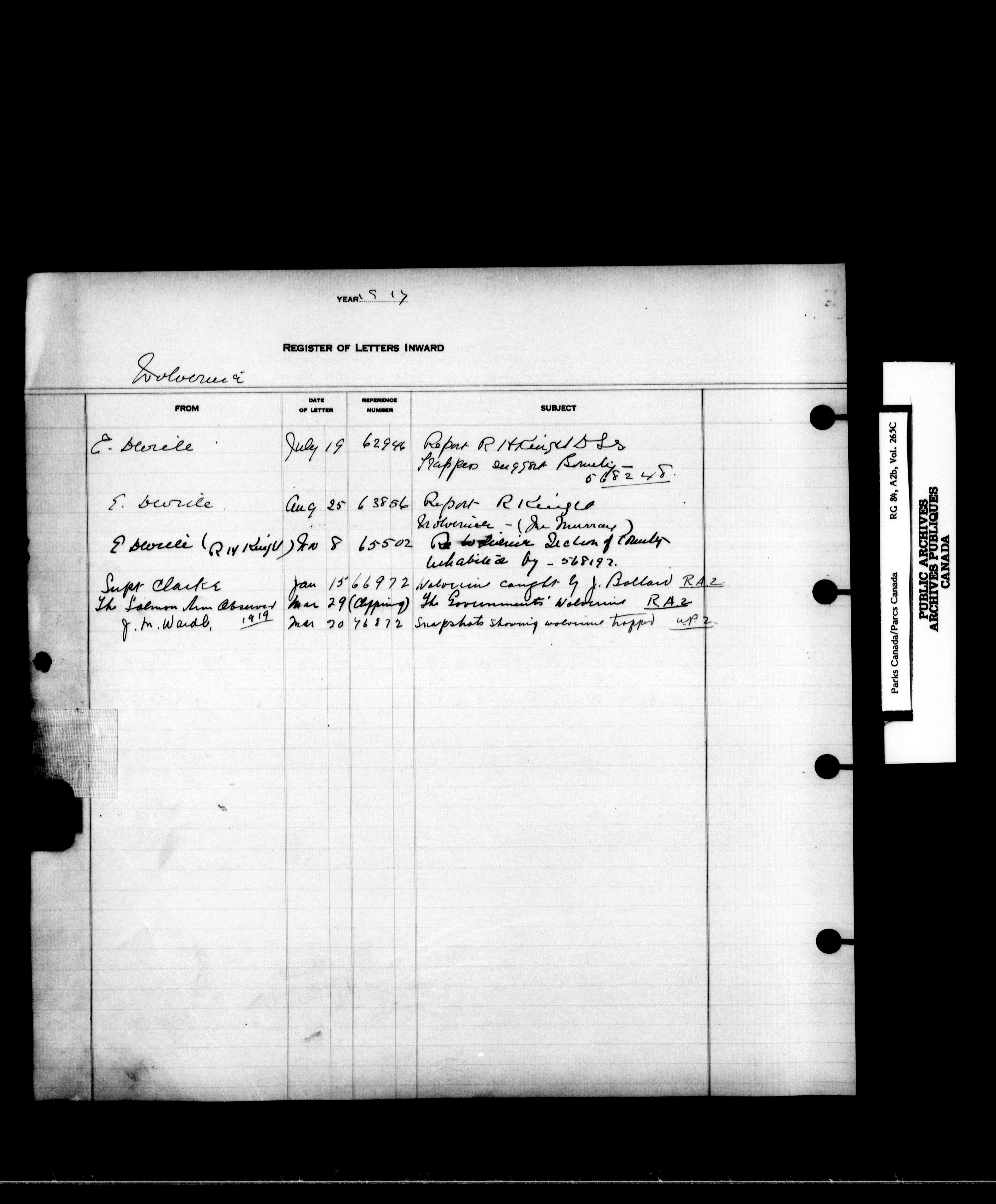 Dominion Parks Branch central registry system : Registers of incoming letters - 7230