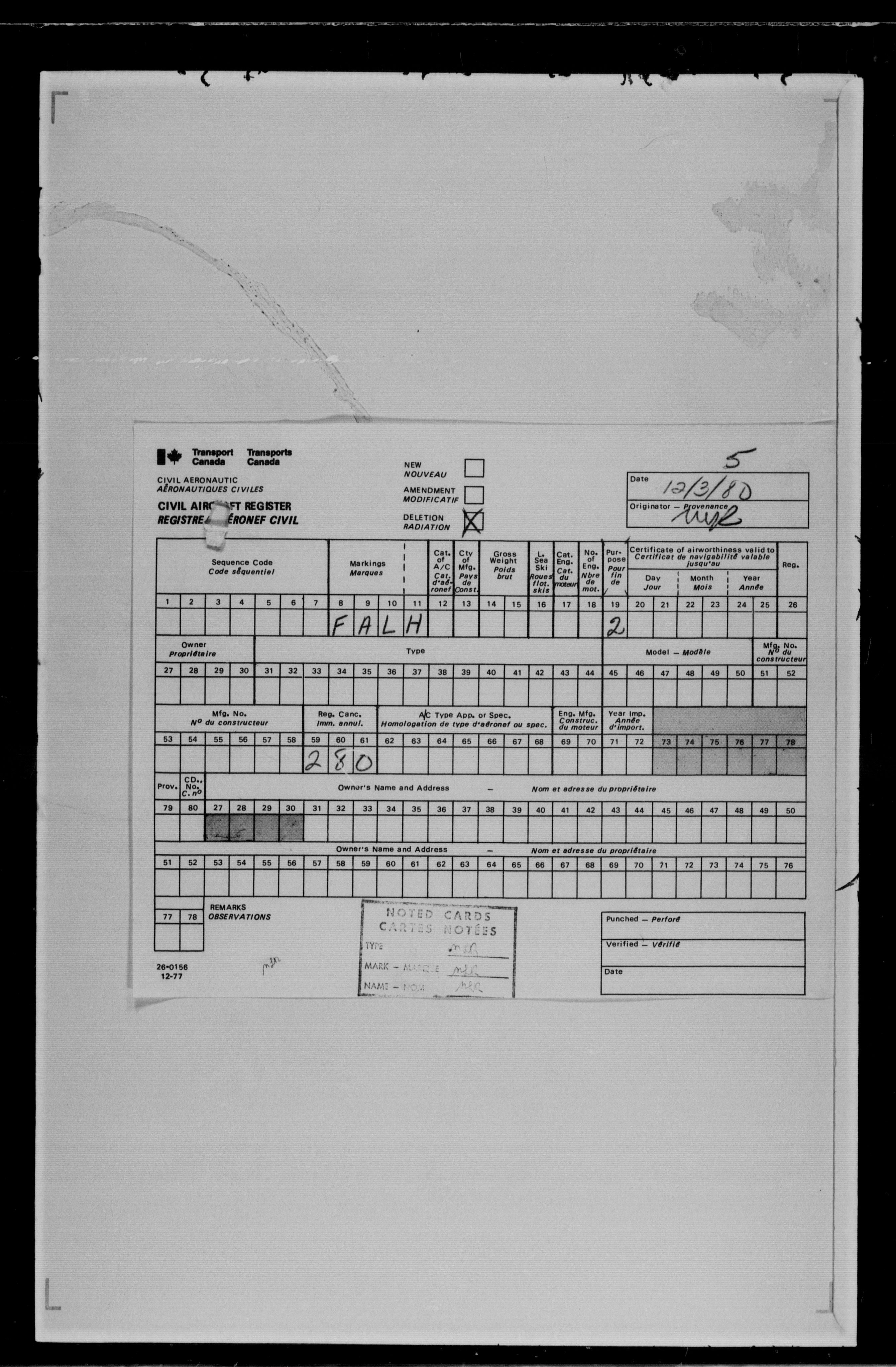 Department of Transport : Civil aircraft registration, inspection and operation files, block 5008, 1920-1986 - 7242