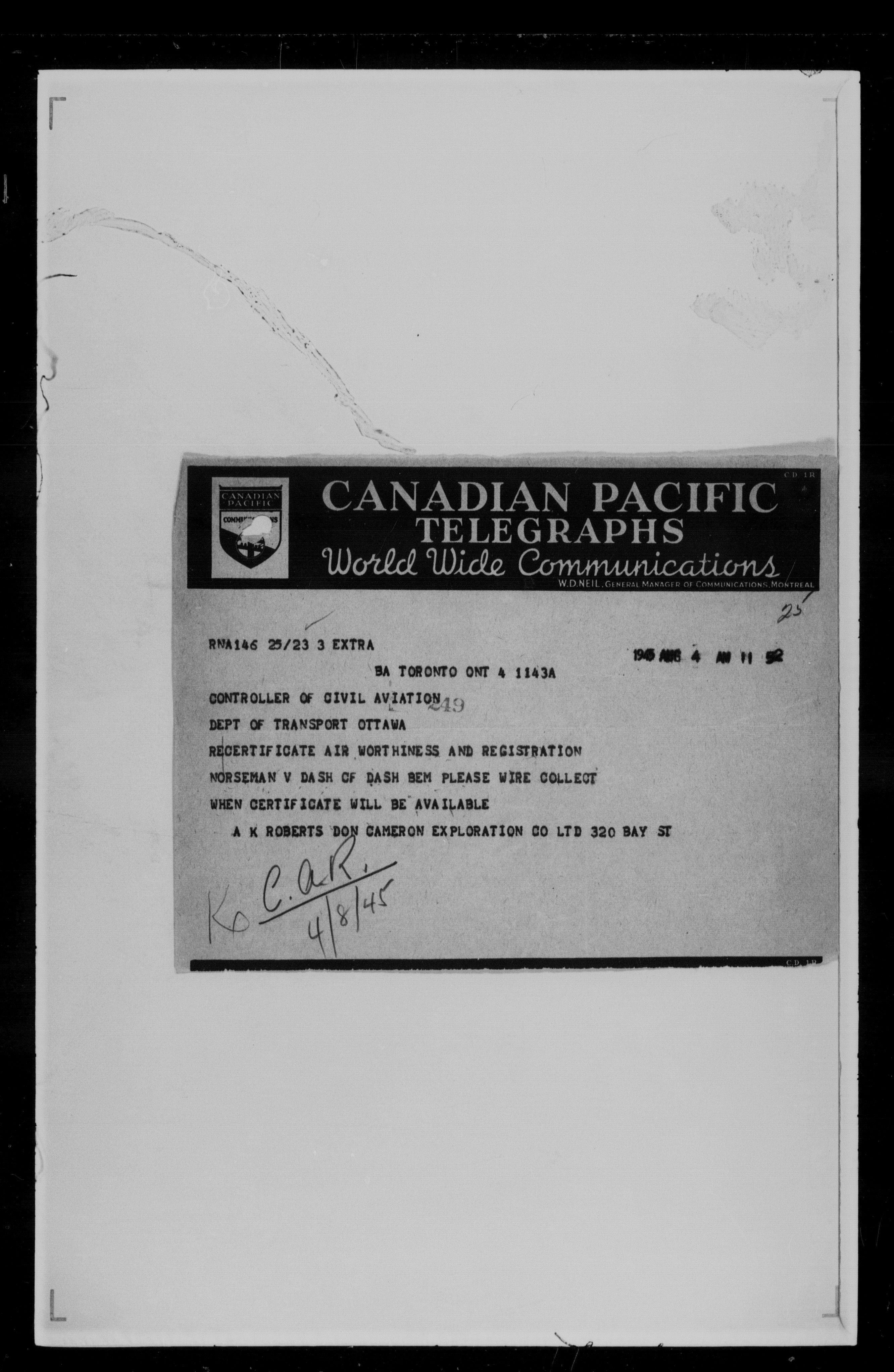 Department of Transport : Civil aircraft registration, inspection and operation files, 1920-1986 : T-7246