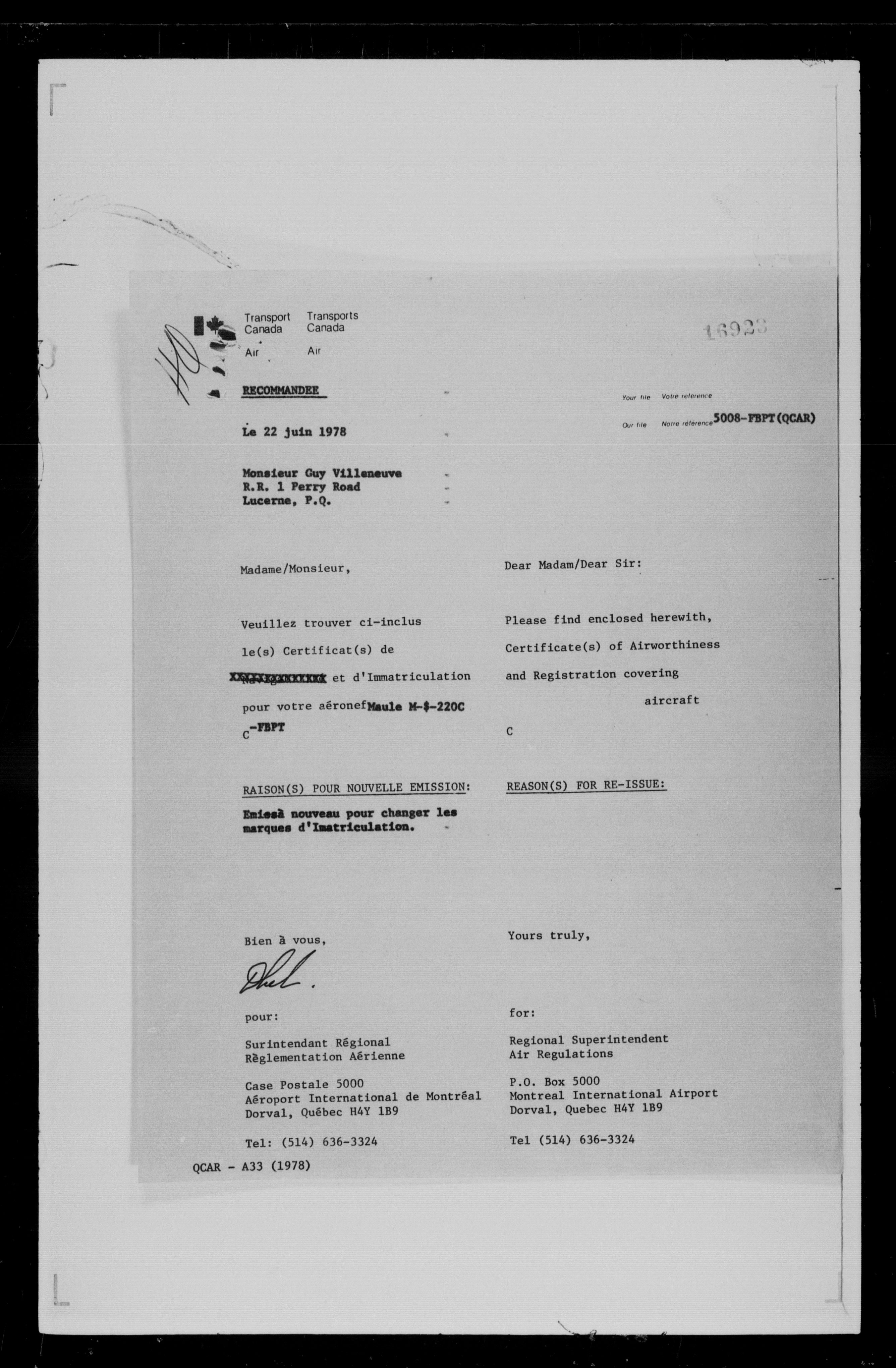 Department of Transport : Civil aircraft registration, inspection and operation files, block 5008, 1920-1986 - 7247