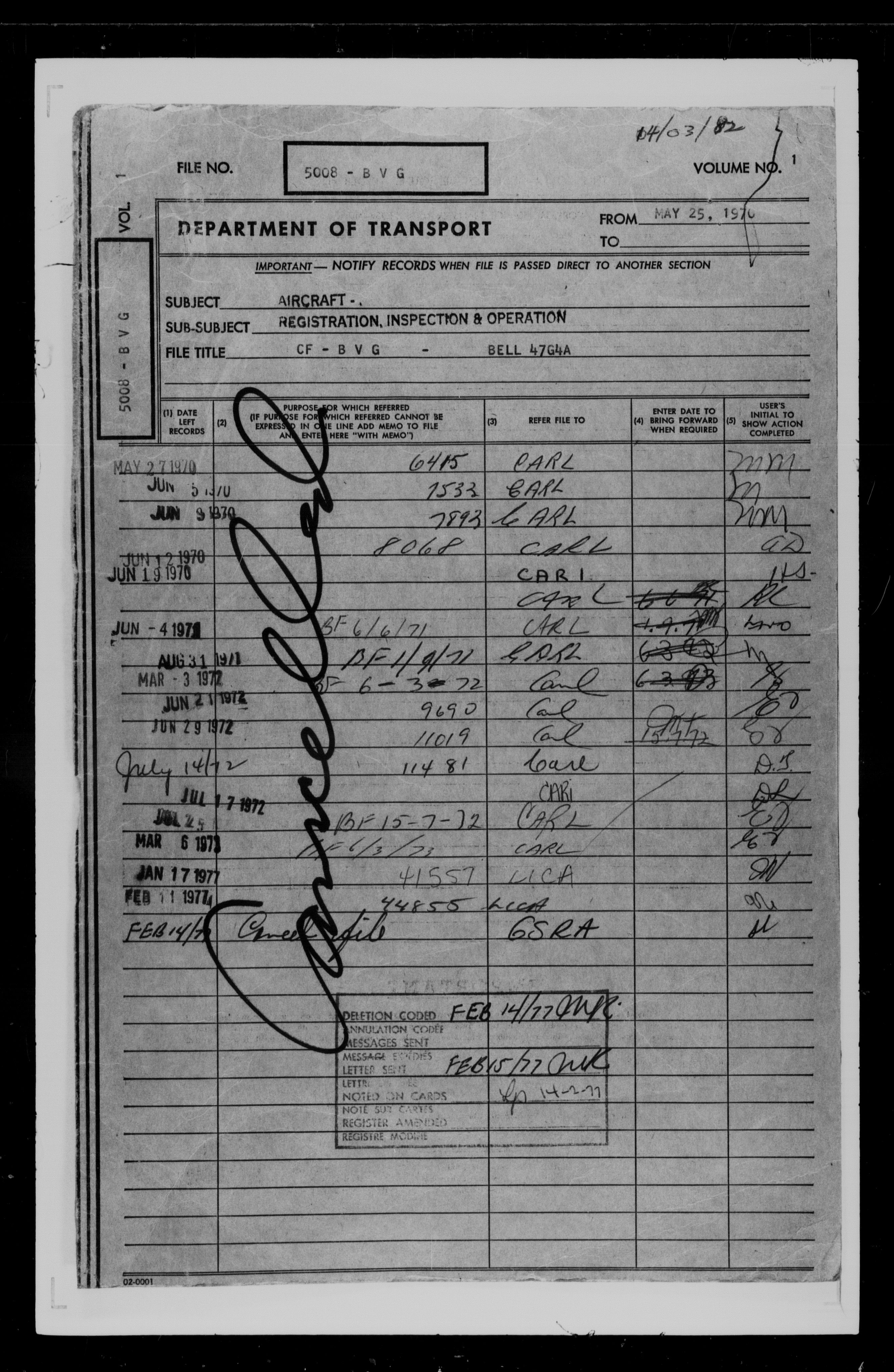 Department of Transport : Civil aircraft registration, inspection and operation files, block 5008, 1920-1986 - 7248