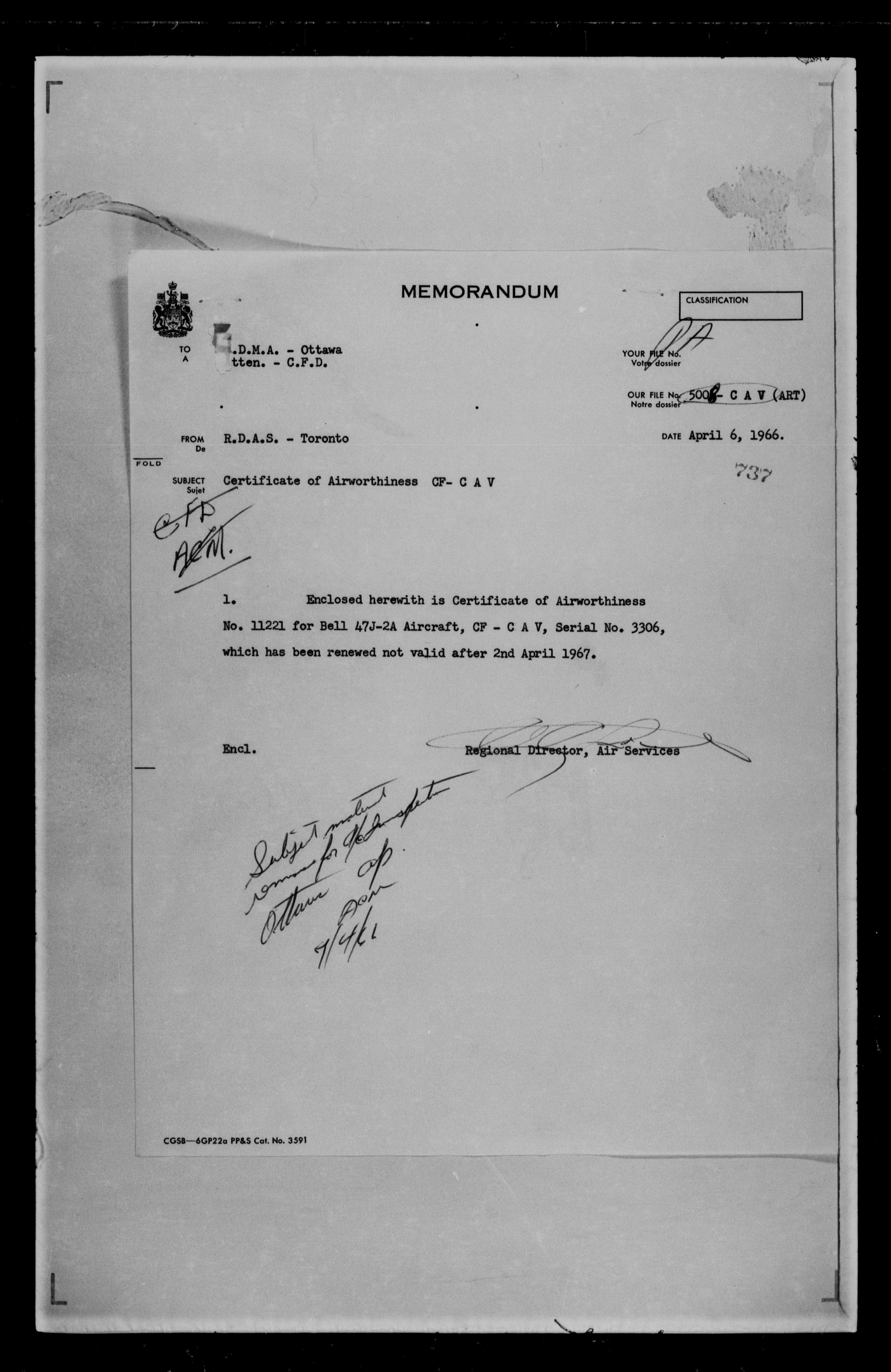 Department of Transport : Civil aircraft registration, inspection and operation files, block 5008, 1920-1986 - 7249