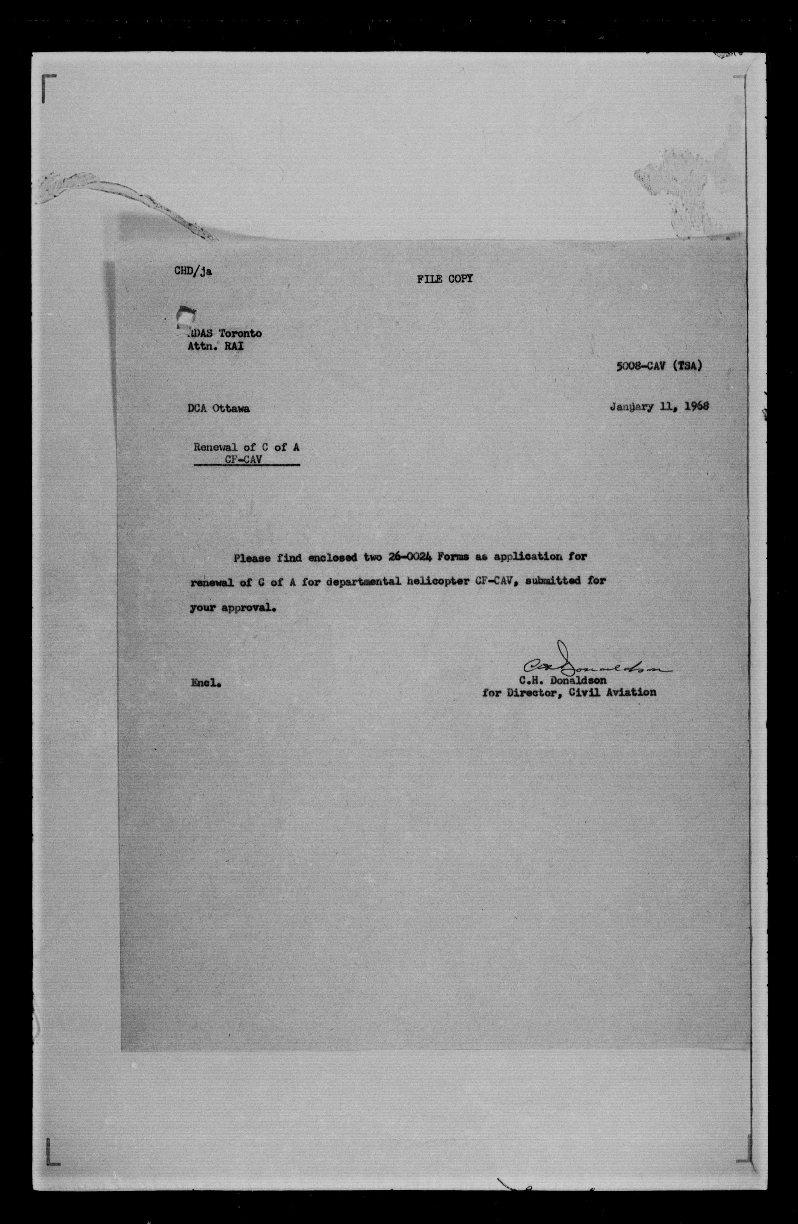 Department of Transport : Civil aircraft registration, inspection and operation files, block 5008, 1920-1986 - 7249