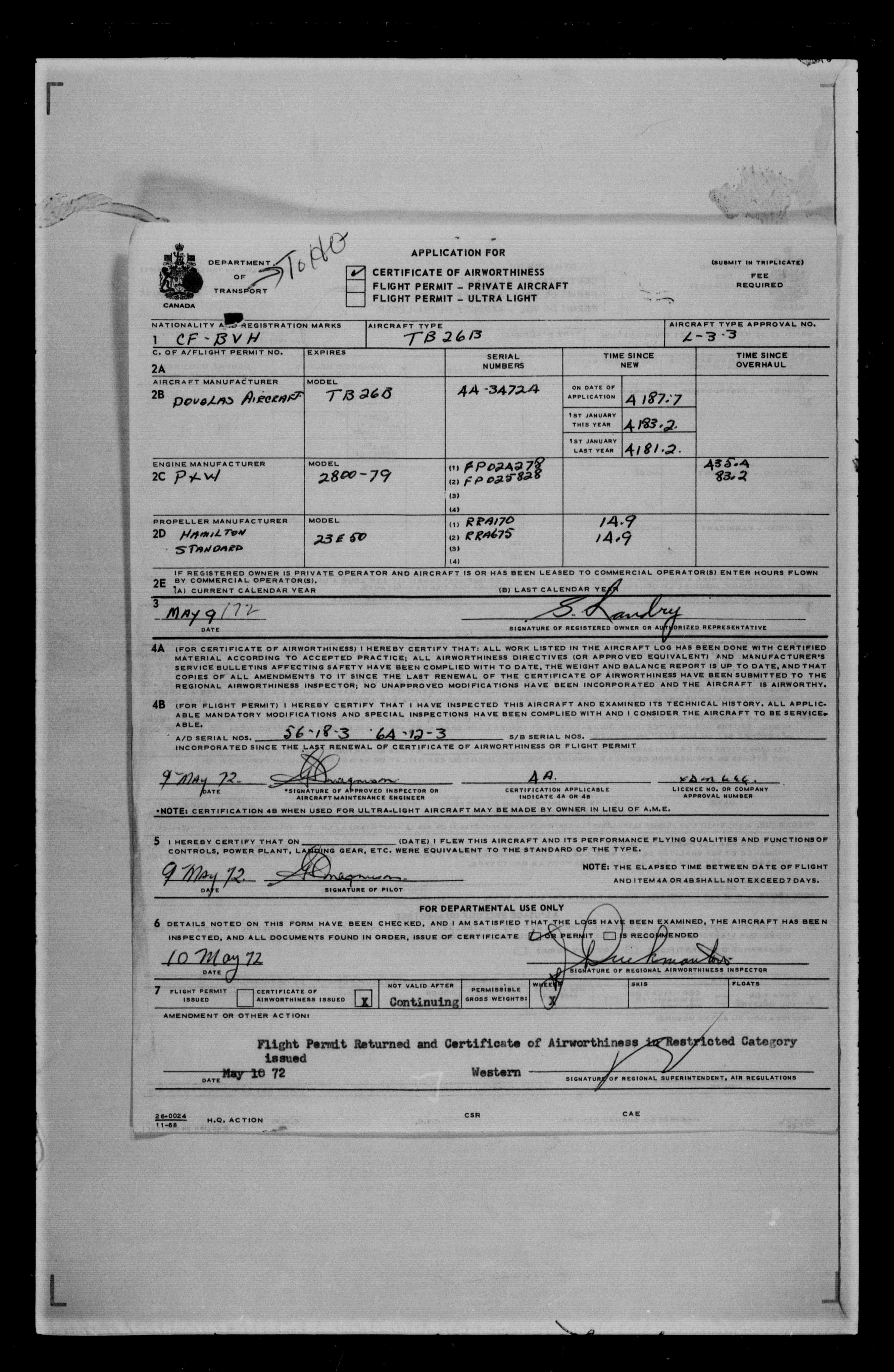 Department of Transport : Civil aircraft registration, inspection and operation files, block 5008, 1920-1986 - 7249
