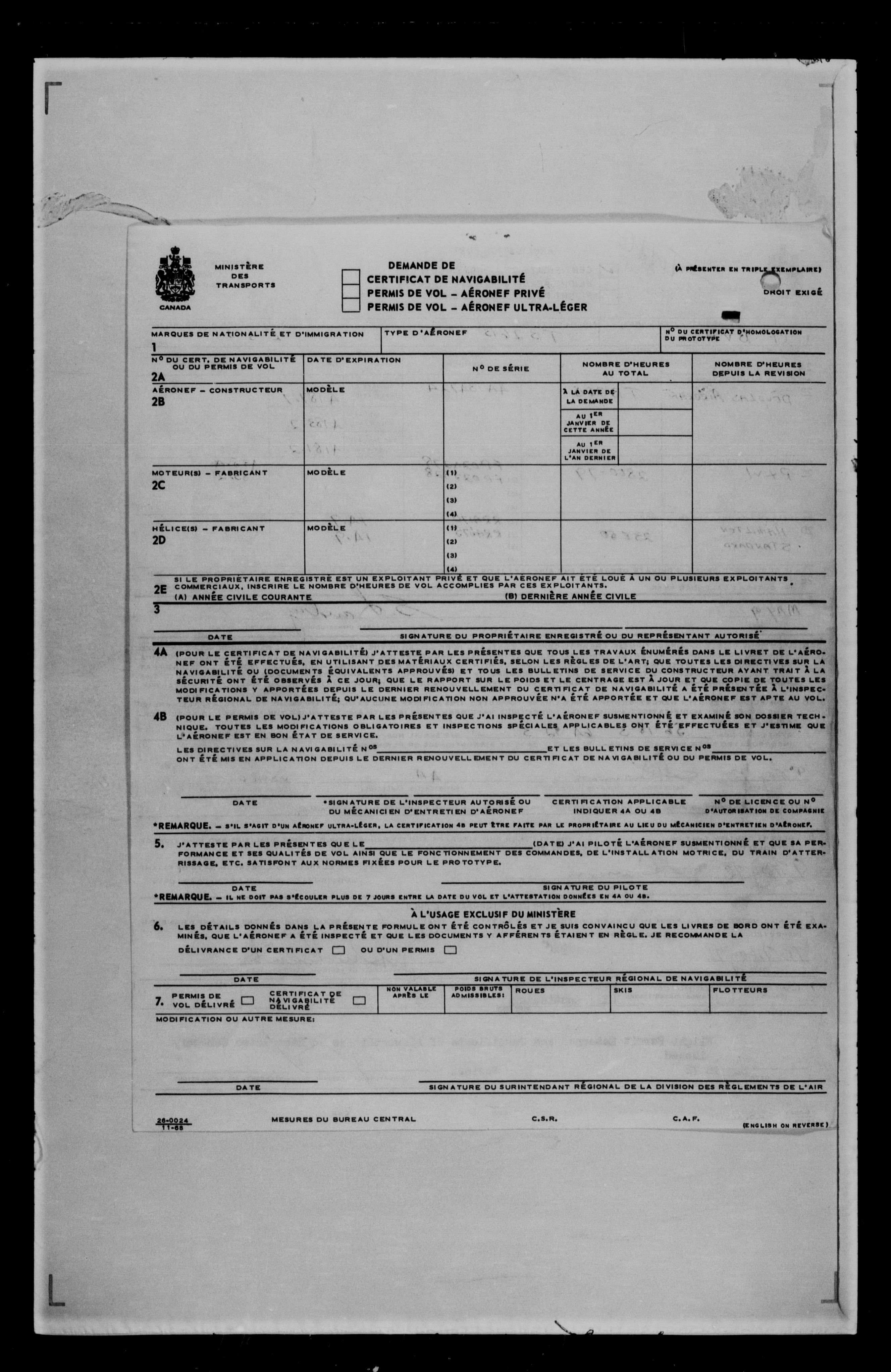 Department of Transport : Civil aircraft registration, inspection and operation files, block 5008, 1920-1986 - 7249
