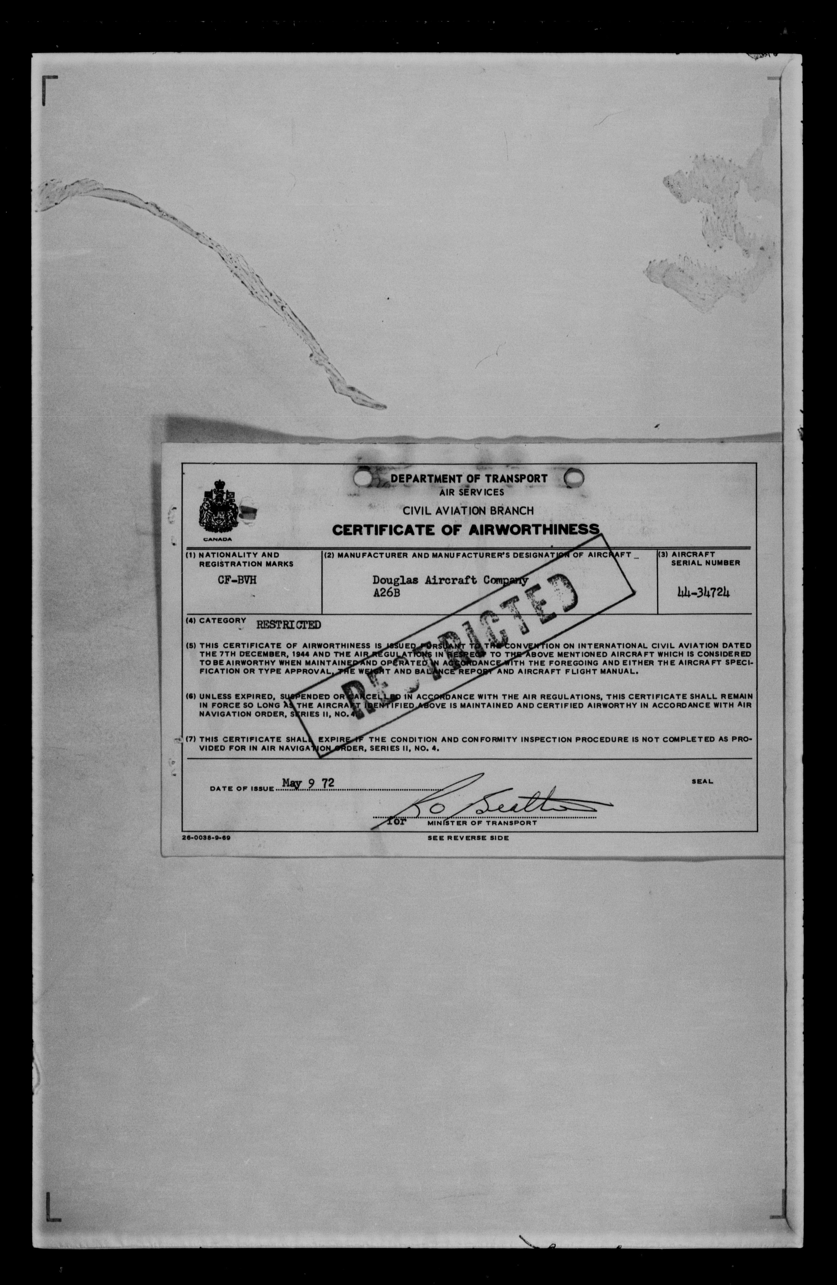 Department of Transport : Civil aircraft registration, inspection and operation files, block 5008, 1920-1986 - 7249