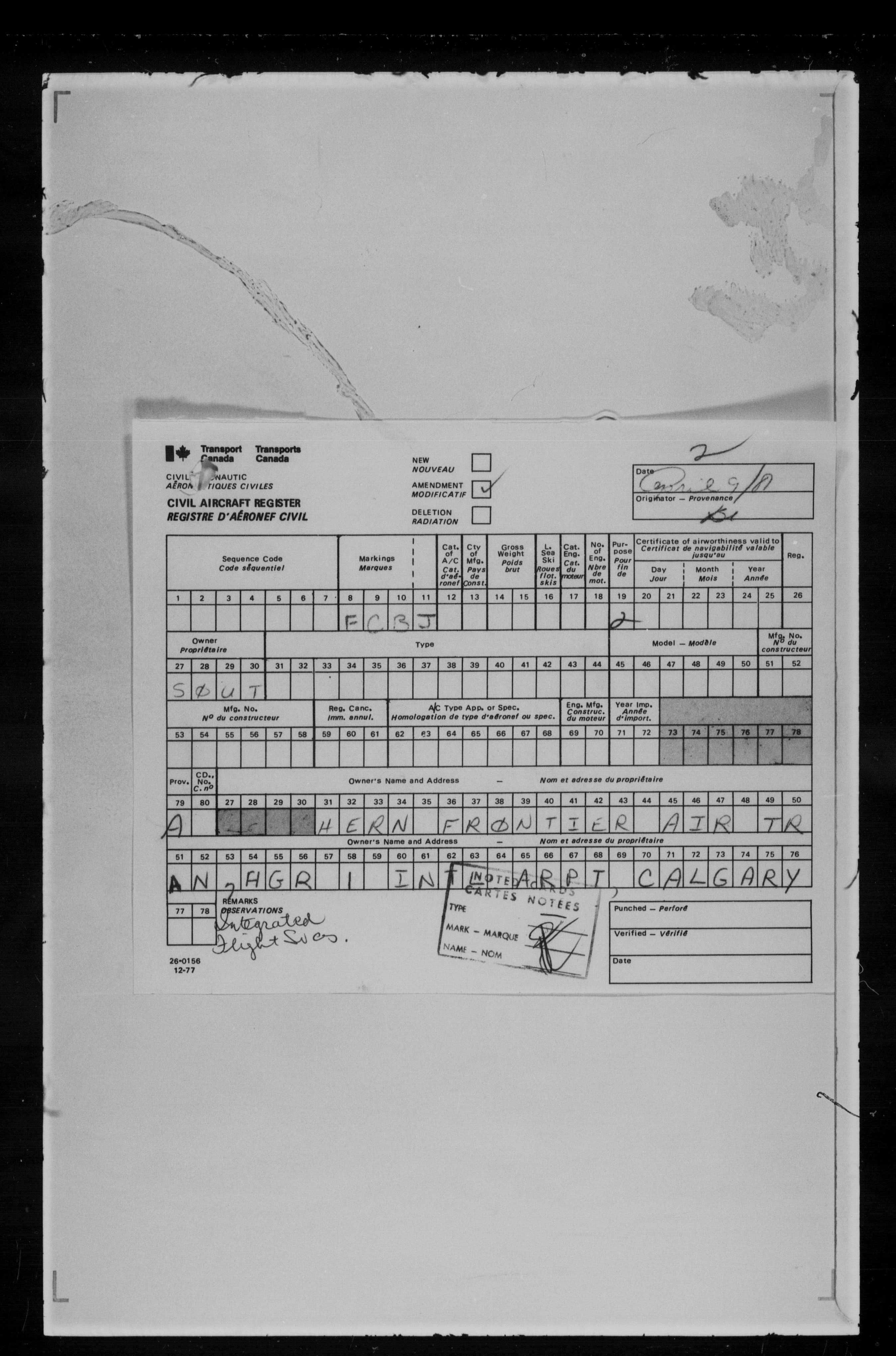 Department of Transport : Civil aircraft registration, inspection and operation files, block 5008, 1920-1986 - 7250