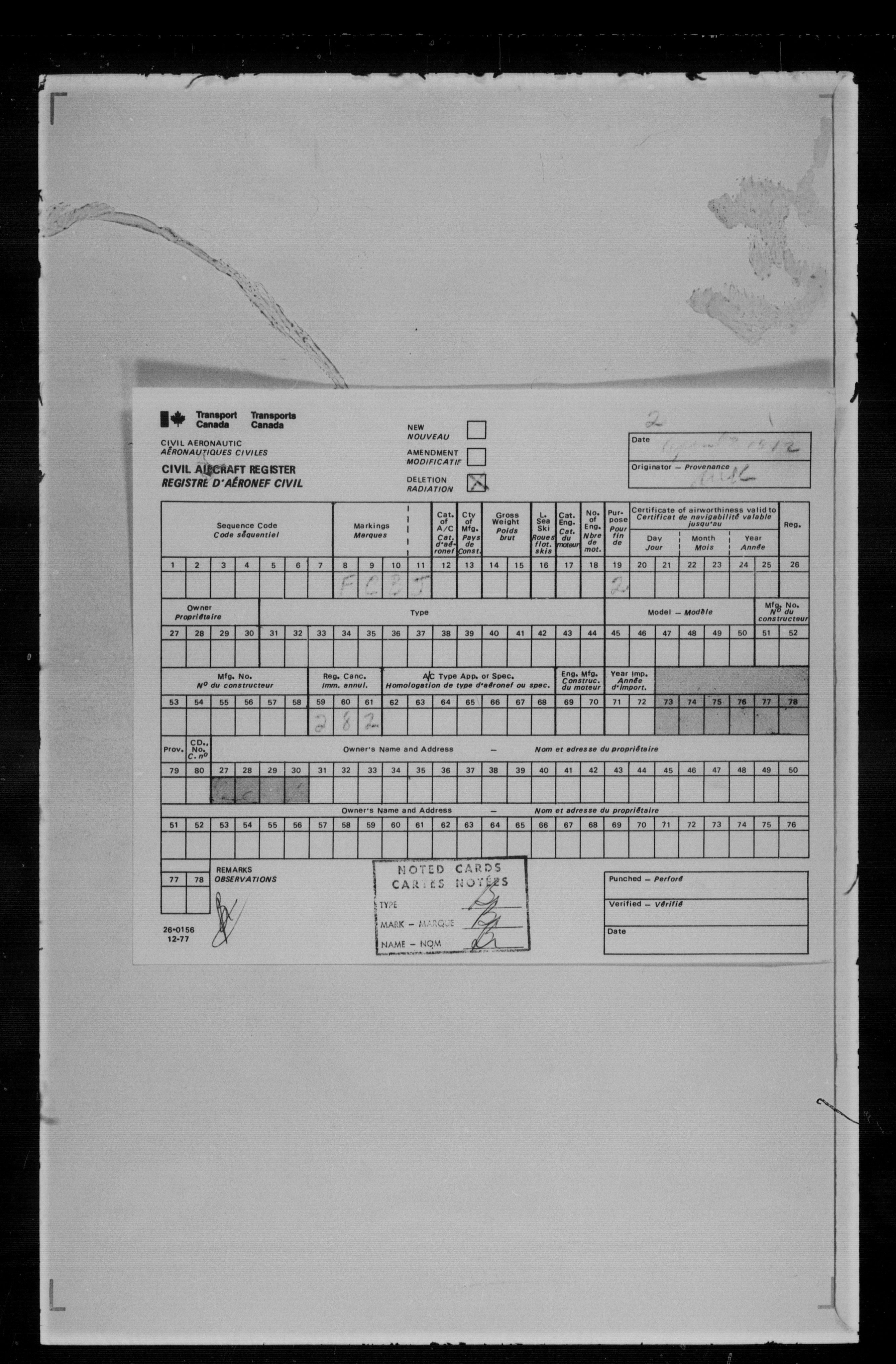 Department of Transport : Civil aircraft registration, inspection and operation files, block 5008, 1920-1986 - 7250