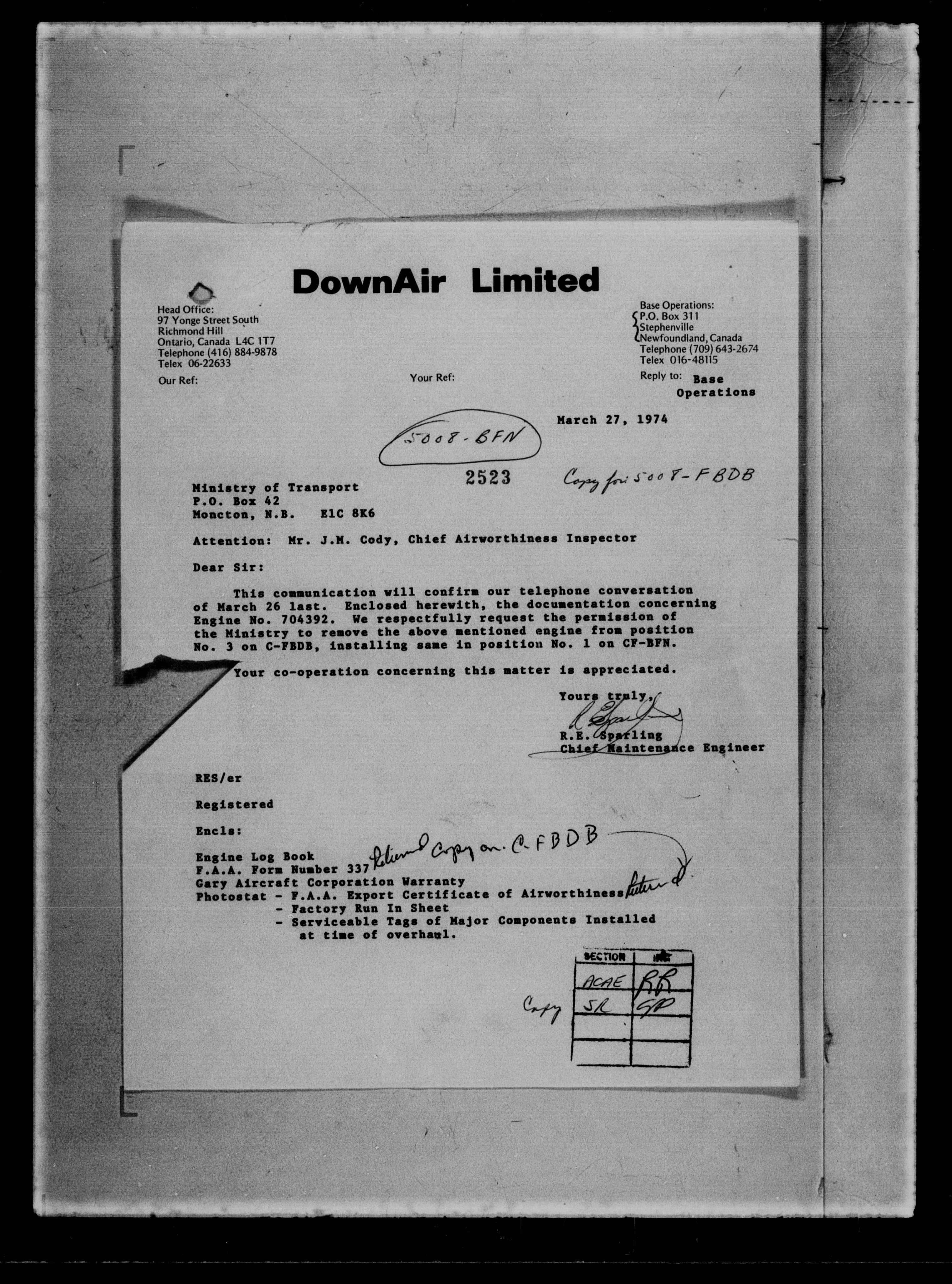 Department of Transport : Civil aircraft registration, inspection and operation files, block 5008, 1920-1986 - 7251