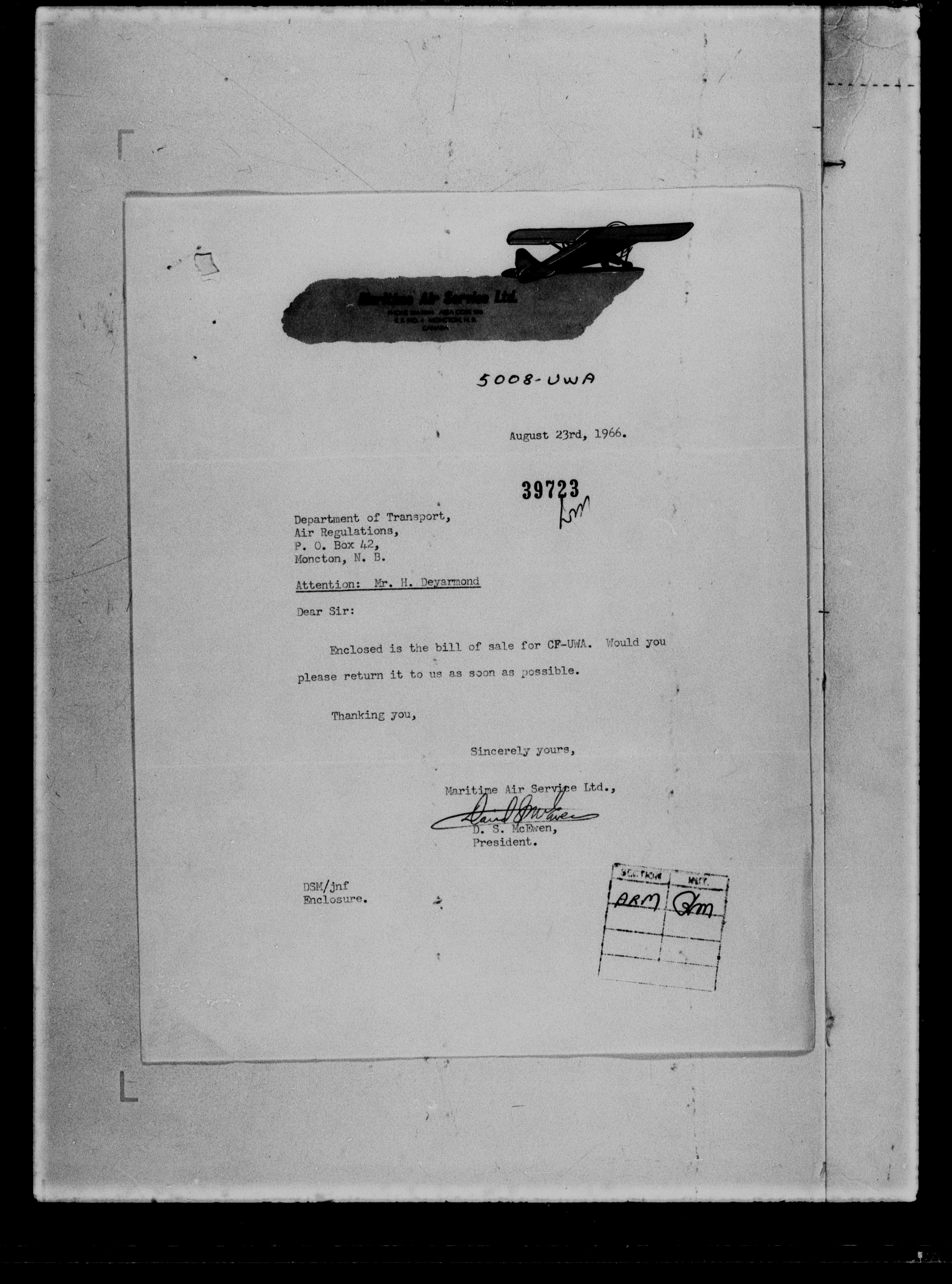 Department of Transport : Civil aircraft registration, inspection and operation files, block 5008, 1920-1986 - 7251