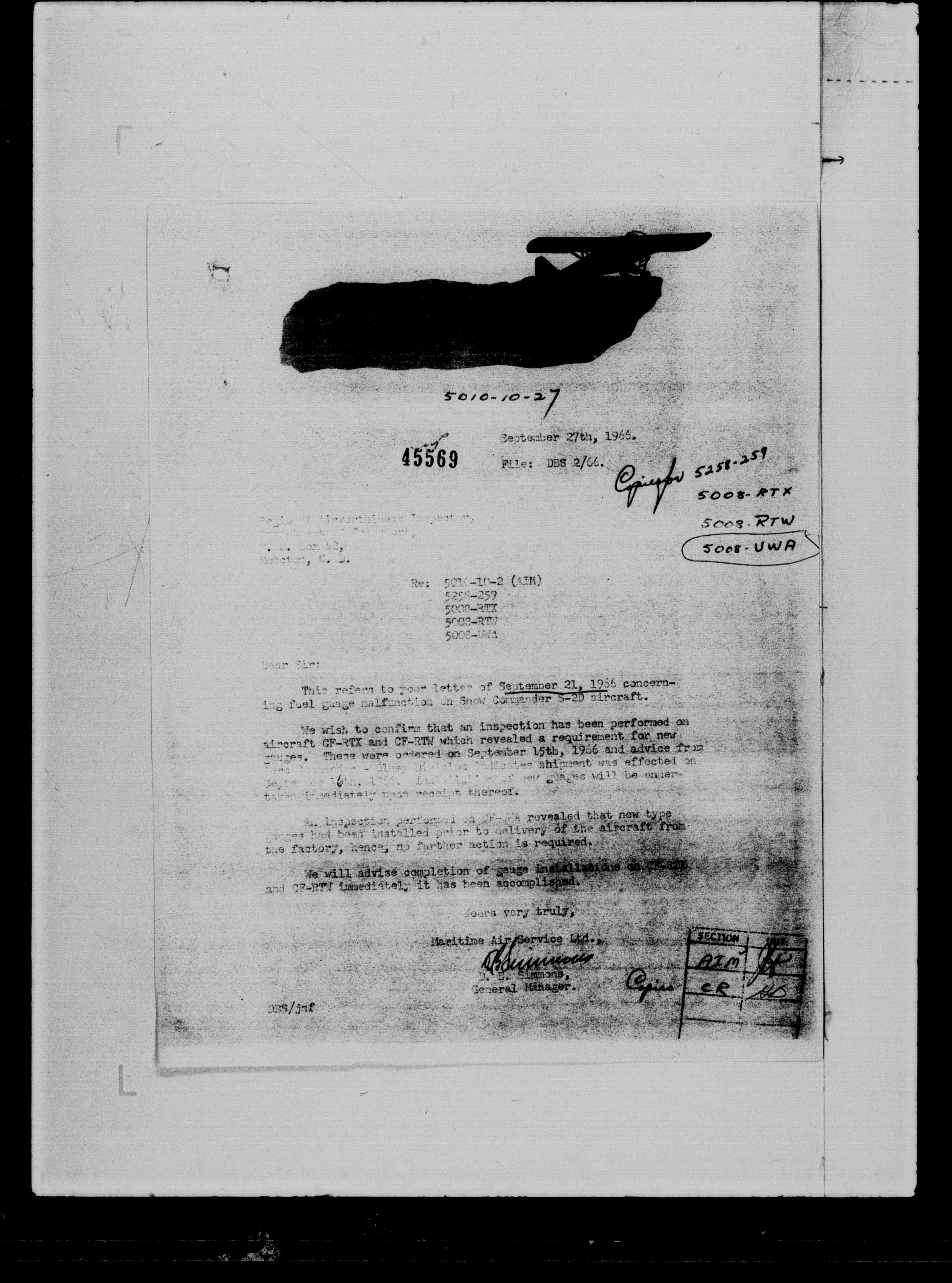 Department of Transport : Civil aircraft registration, inspection and operation files, block 5008, 1920-1986 - 7251