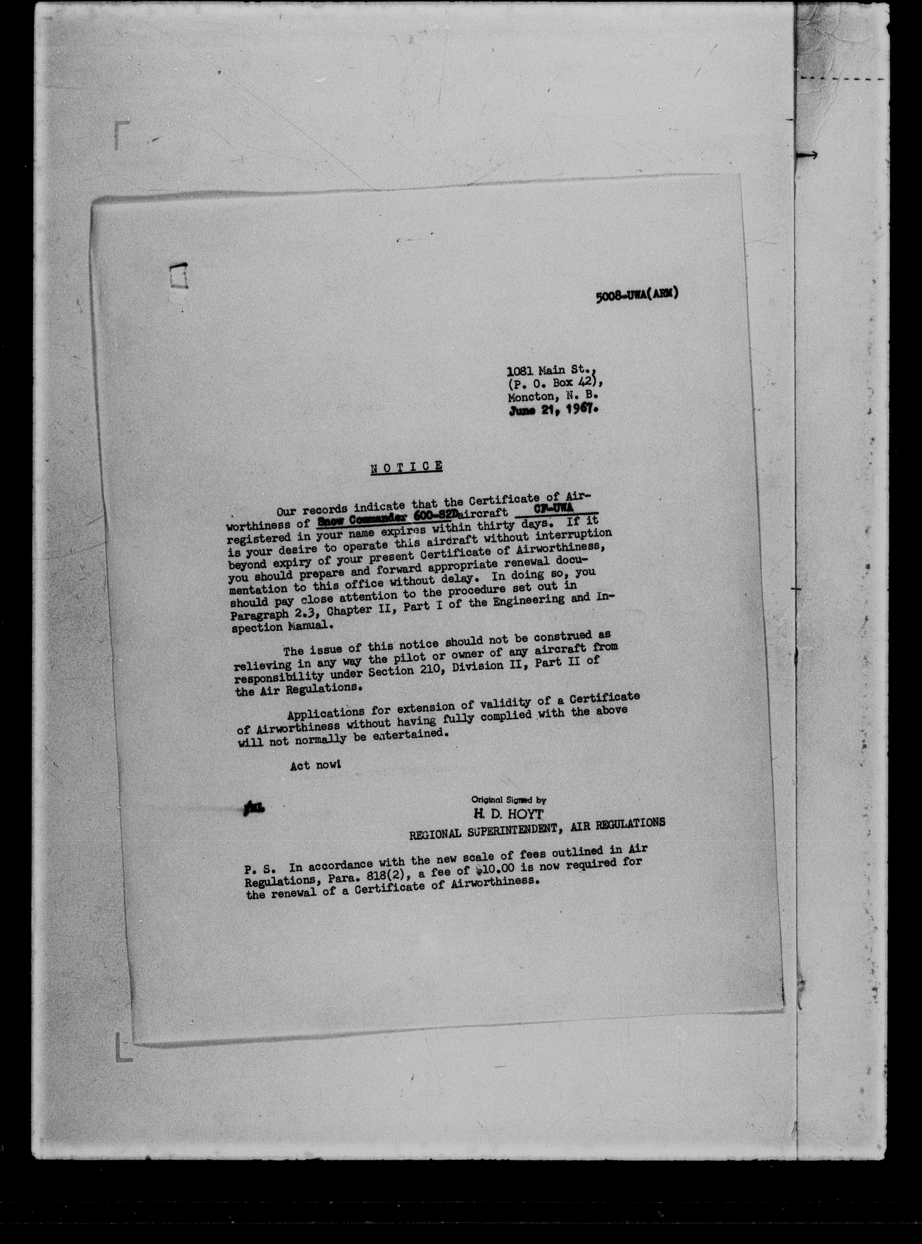 Department of Transport : Civil aircraft registration, inspection and operation files, block 5008, 1920-1986 - 7251