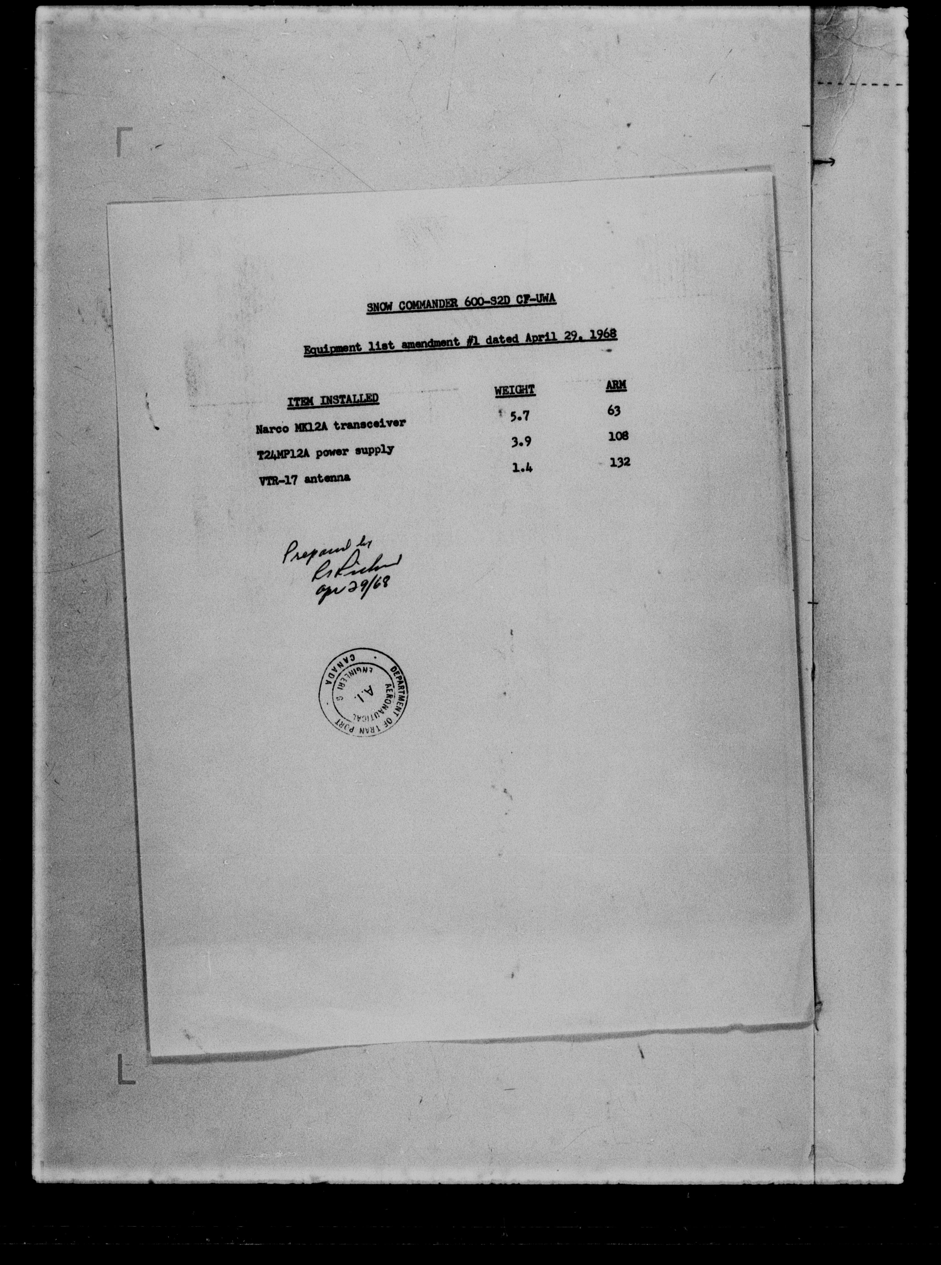 Department of Transport : Civil aircraft registration, inspection and operation files, block 5008, 1920-1986 - 7251