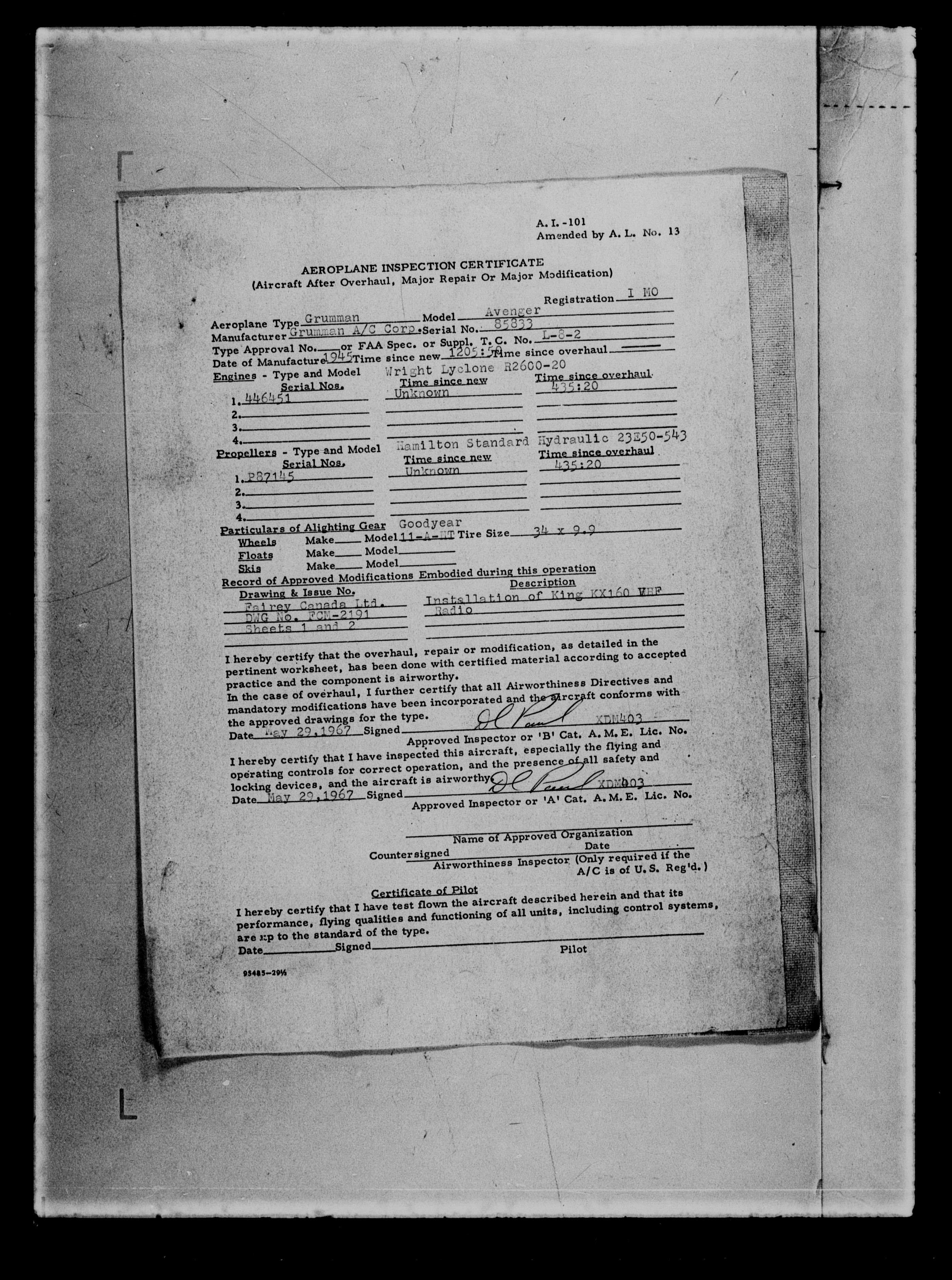 Department of Transport : Civil aircraft registration, inspection and operation files, block 5008, 1920-1986 - 7253