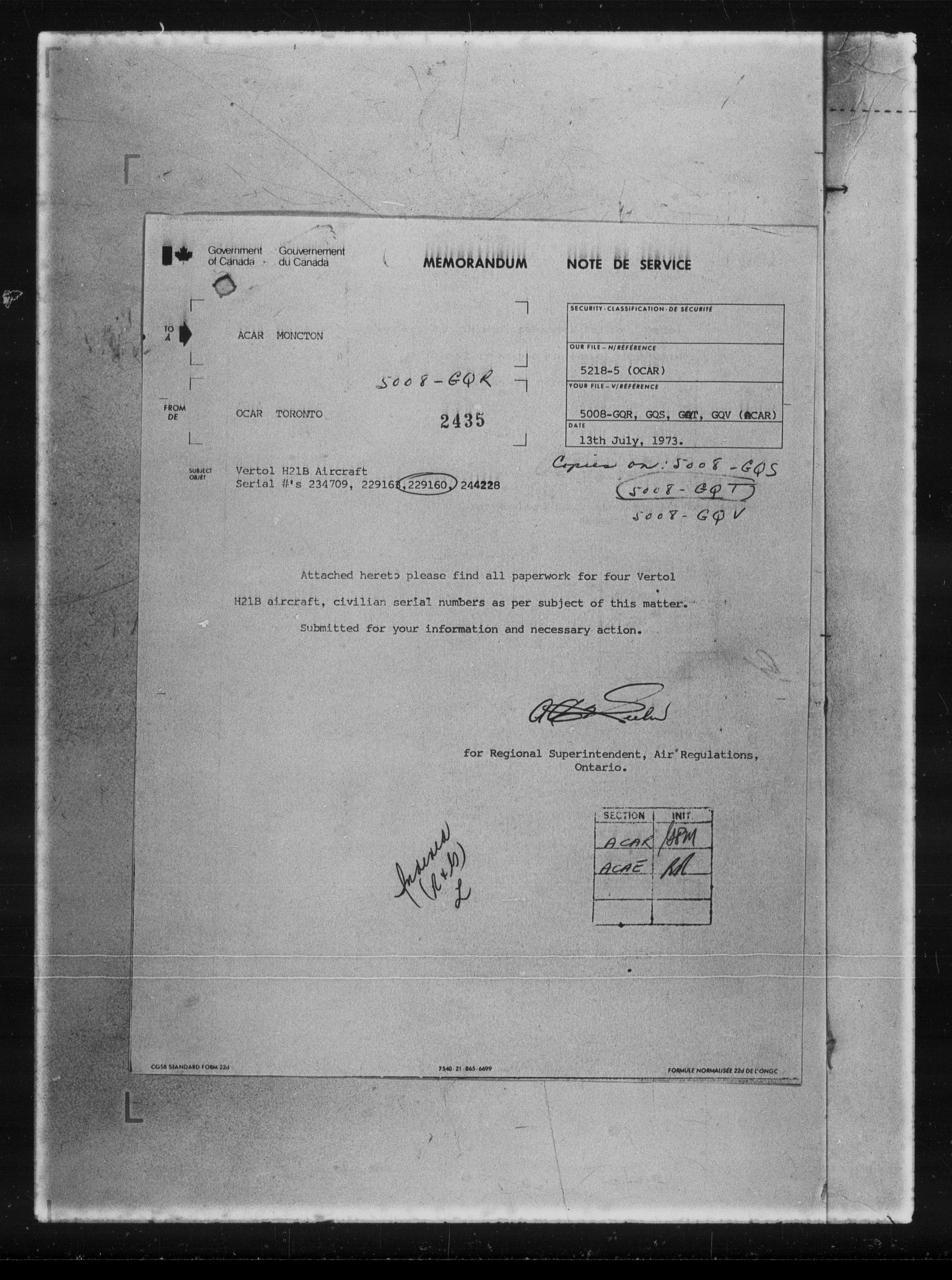 Department of Transport : Civil aircraft registration, inspection and operation files, block 5008, 1920-1986 - 7255