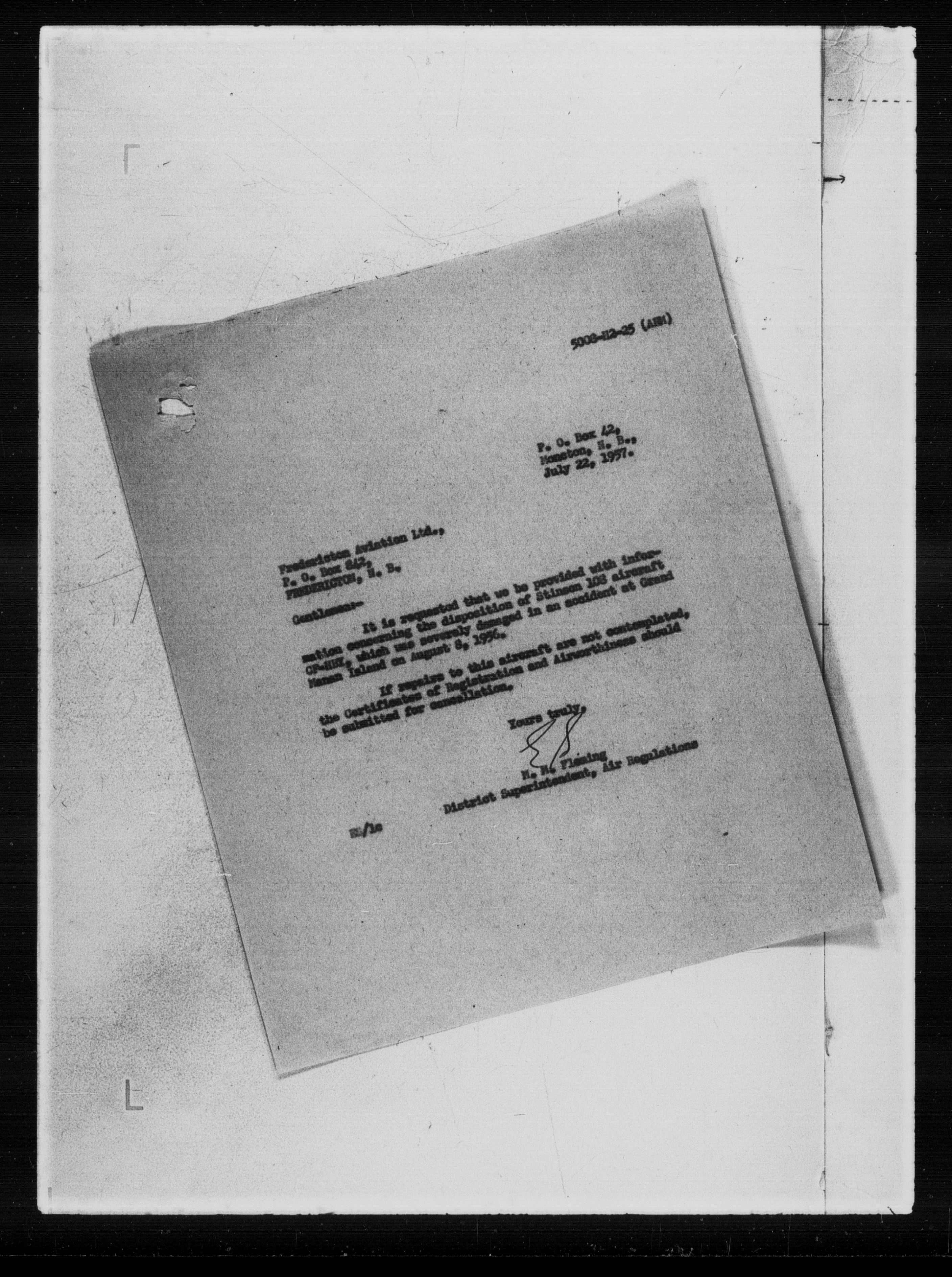 Department of Transport : Civil aircraft registration, inspection and operation files, block 5008, 1920-1986 - 7256