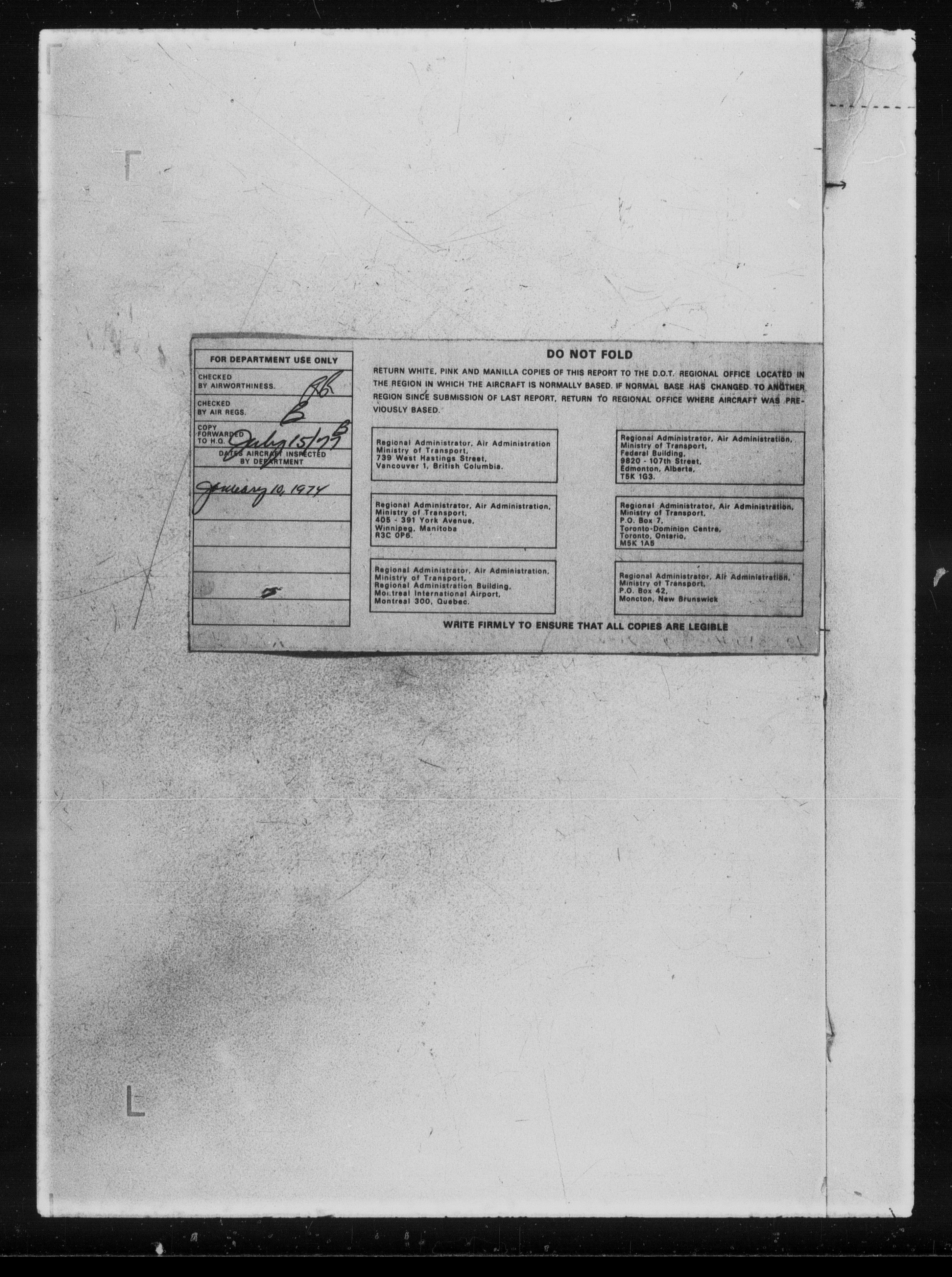 Department of Transport : Civil aircraft registration, inspection and operation files, block 5008, 1920-1986 - 7257