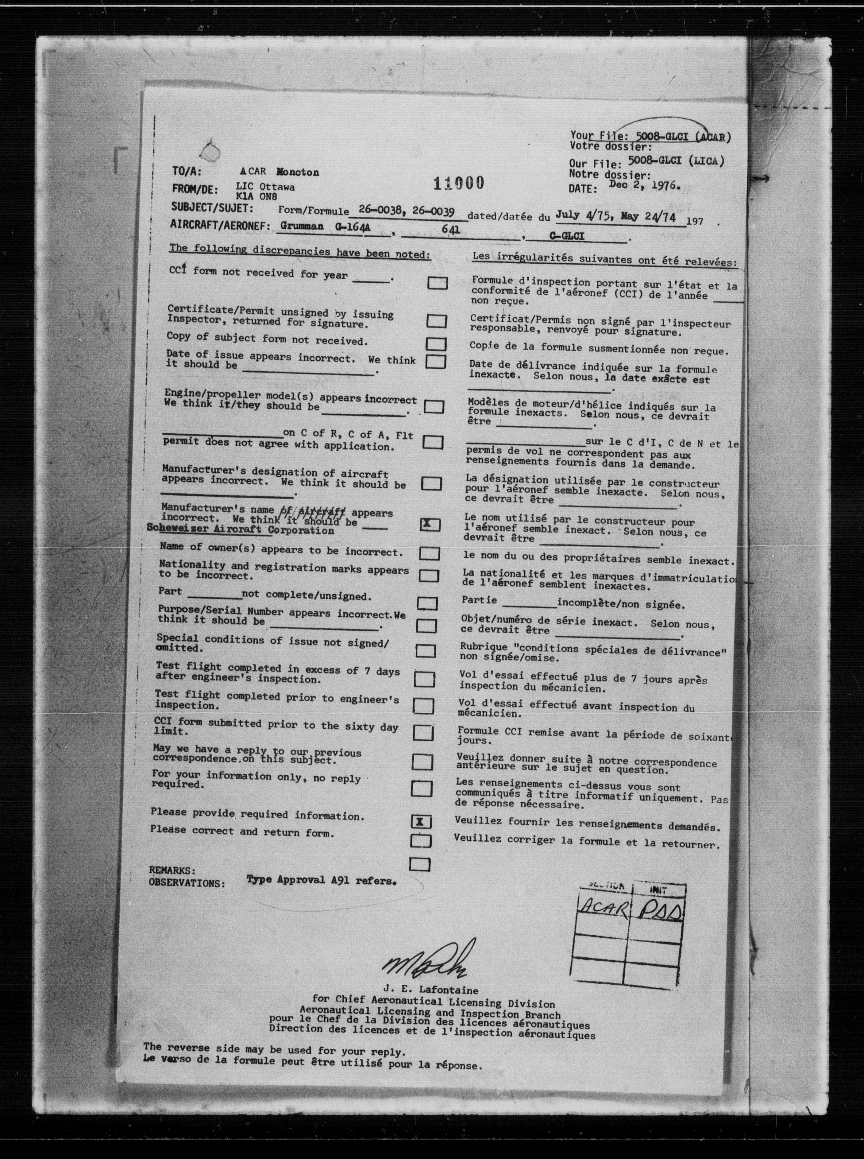Department of Transport : Civil aircraft registration, inspection and operation files, block 5008, 1920-1986 - 7259