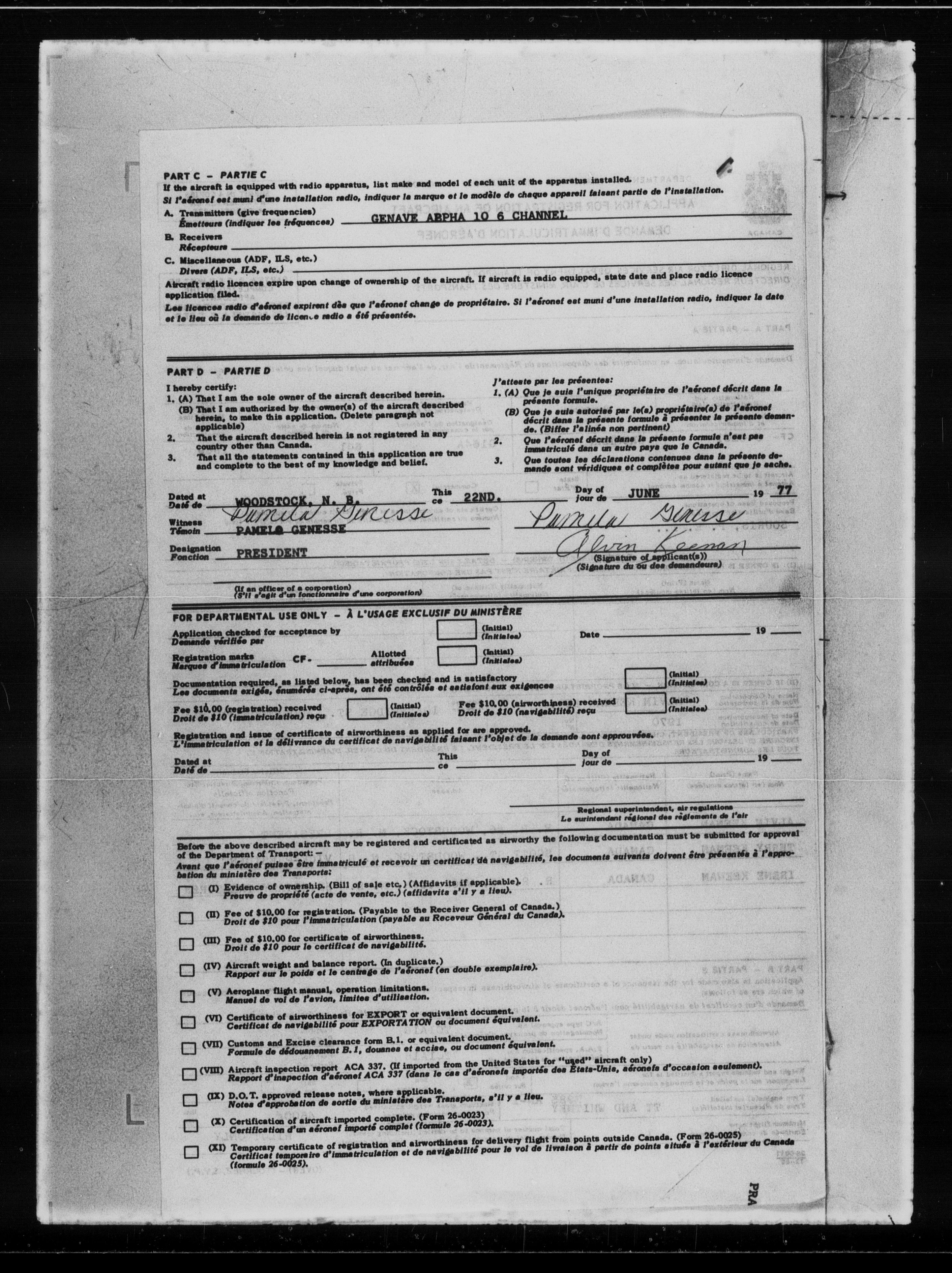 Department of Transport : Civil aircraft registration, inspection and operation files, 1920-1986 : T-7259