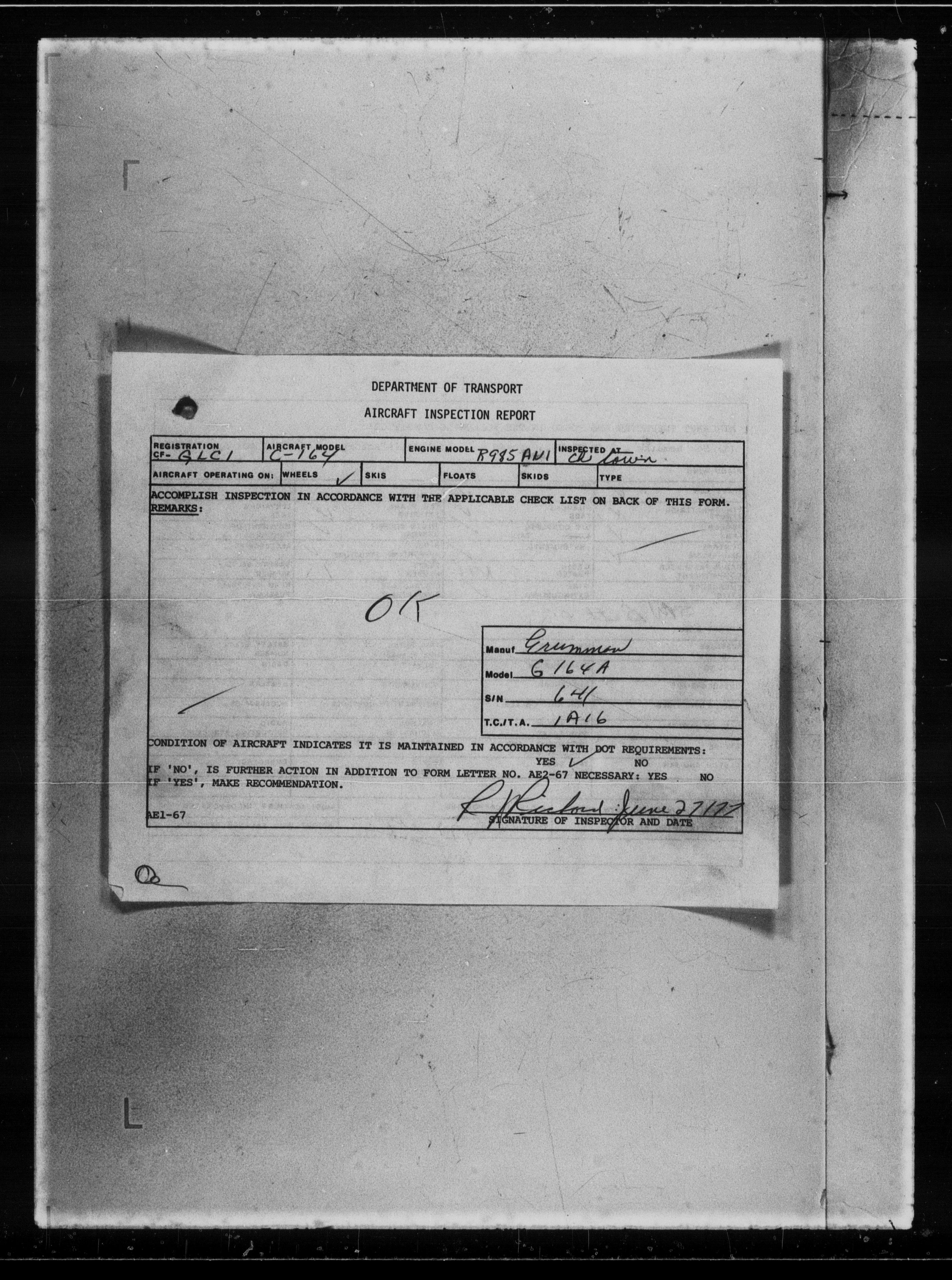 Department of Transport : Civil aircraft registration, inspection and operation files, block 5008, 1920-1986 - 7259