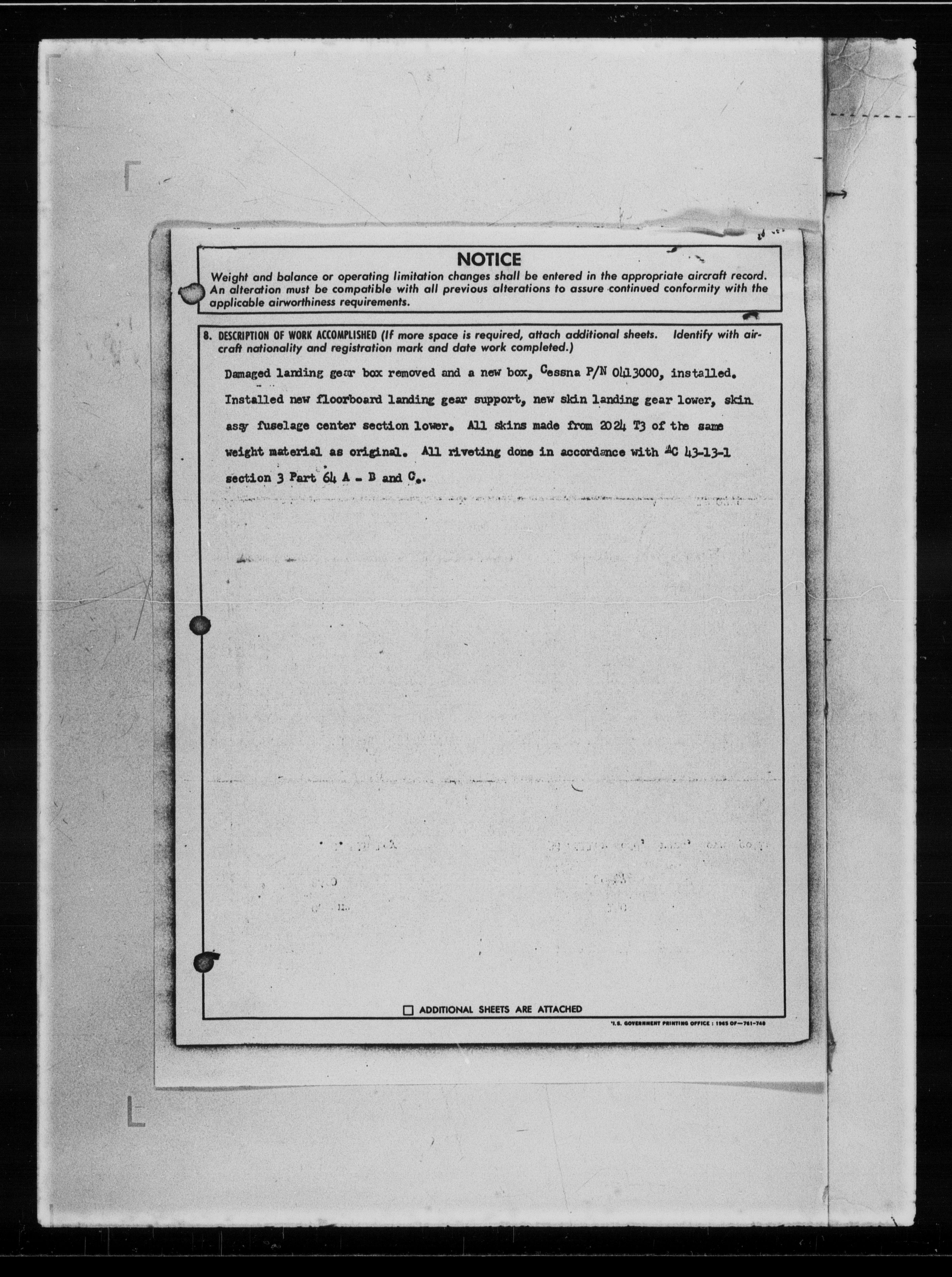 Department of Transport : Civil aircraft registration, inspection and operation files, block 5008, 1920-1986 - 7259
