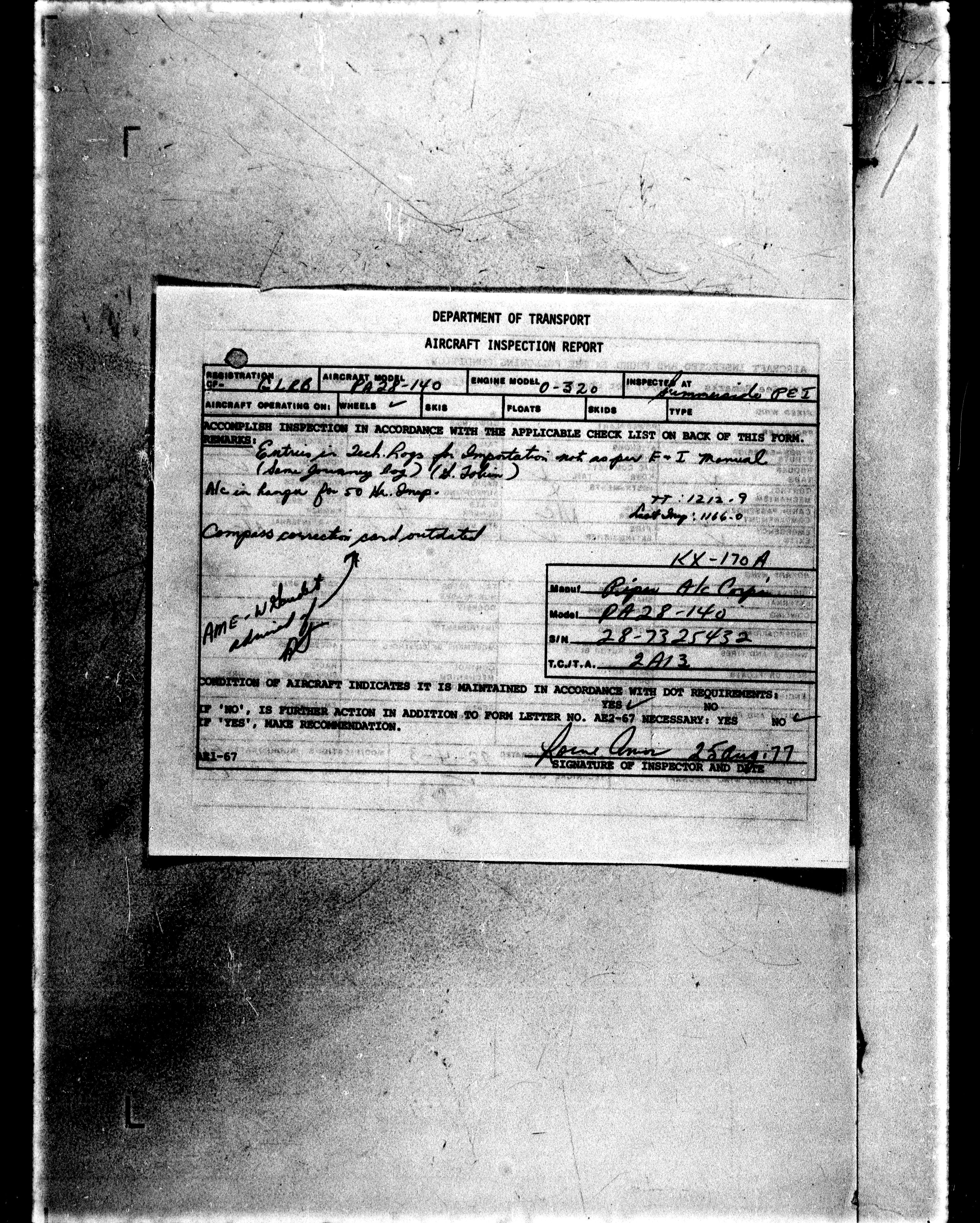 Department of Transport : Civil aircraft registration, inspection and operation files, block 5008, 1920-1986 - 7260