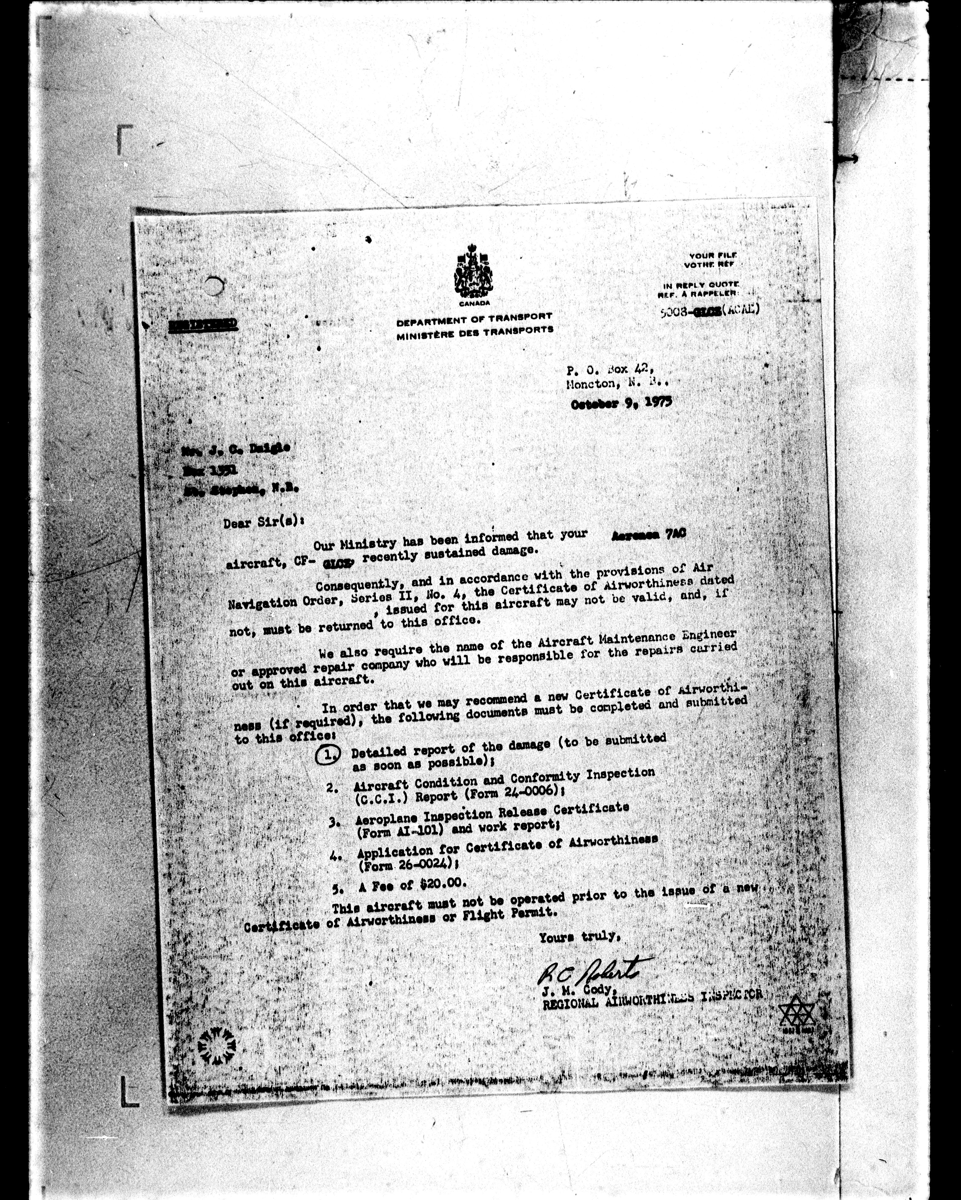 Department of Transport : Civil aircraft registration, inspection and operation files, block 5008, 1920-1986 - 7260