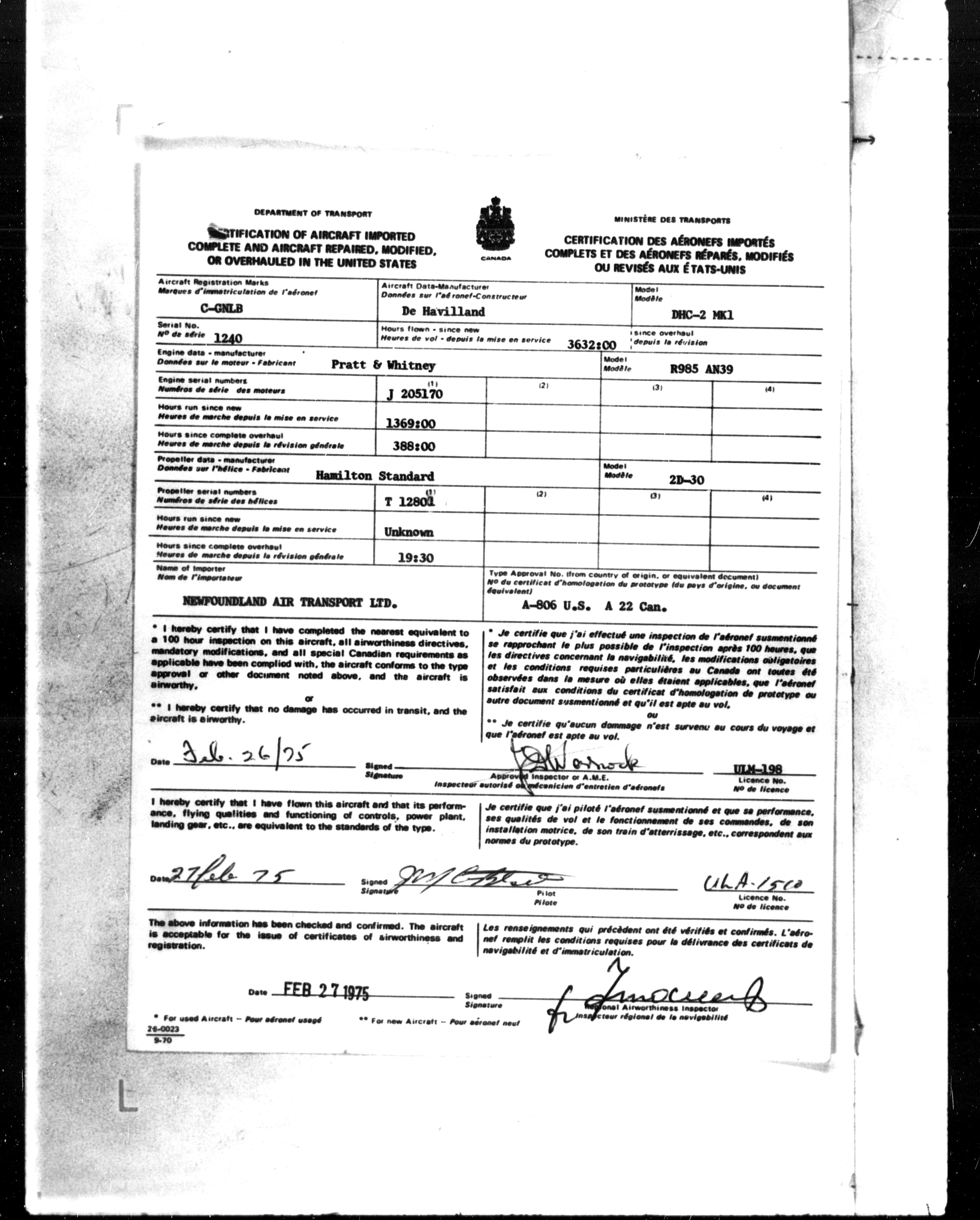 Department of Transport : Civil aircraft registration, inspection and operation files, block 5008, 1920-1986 - 7261