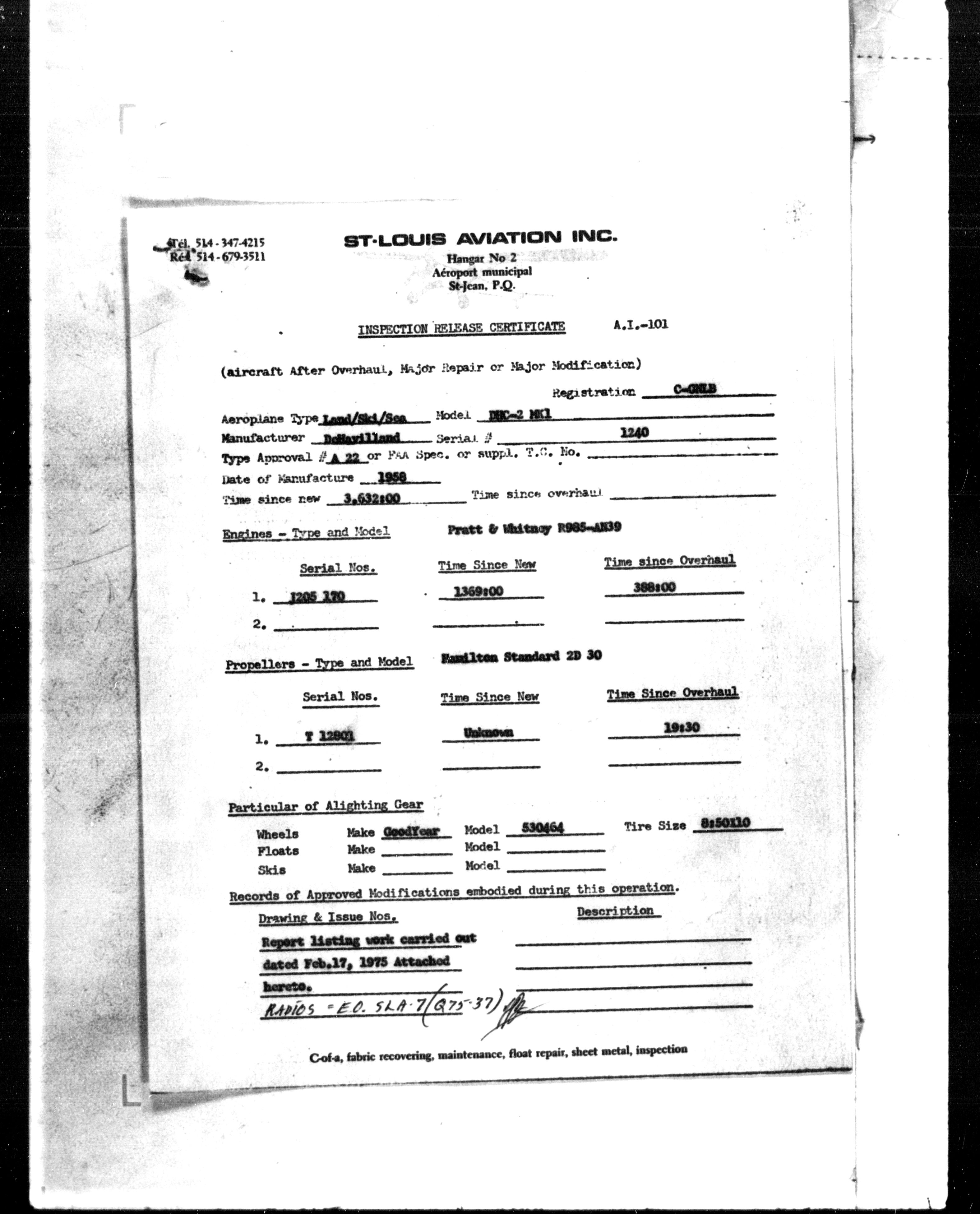 Department of Transport : Civil aircraft registration, inspection and operation files, 1920-1986 : T-7261