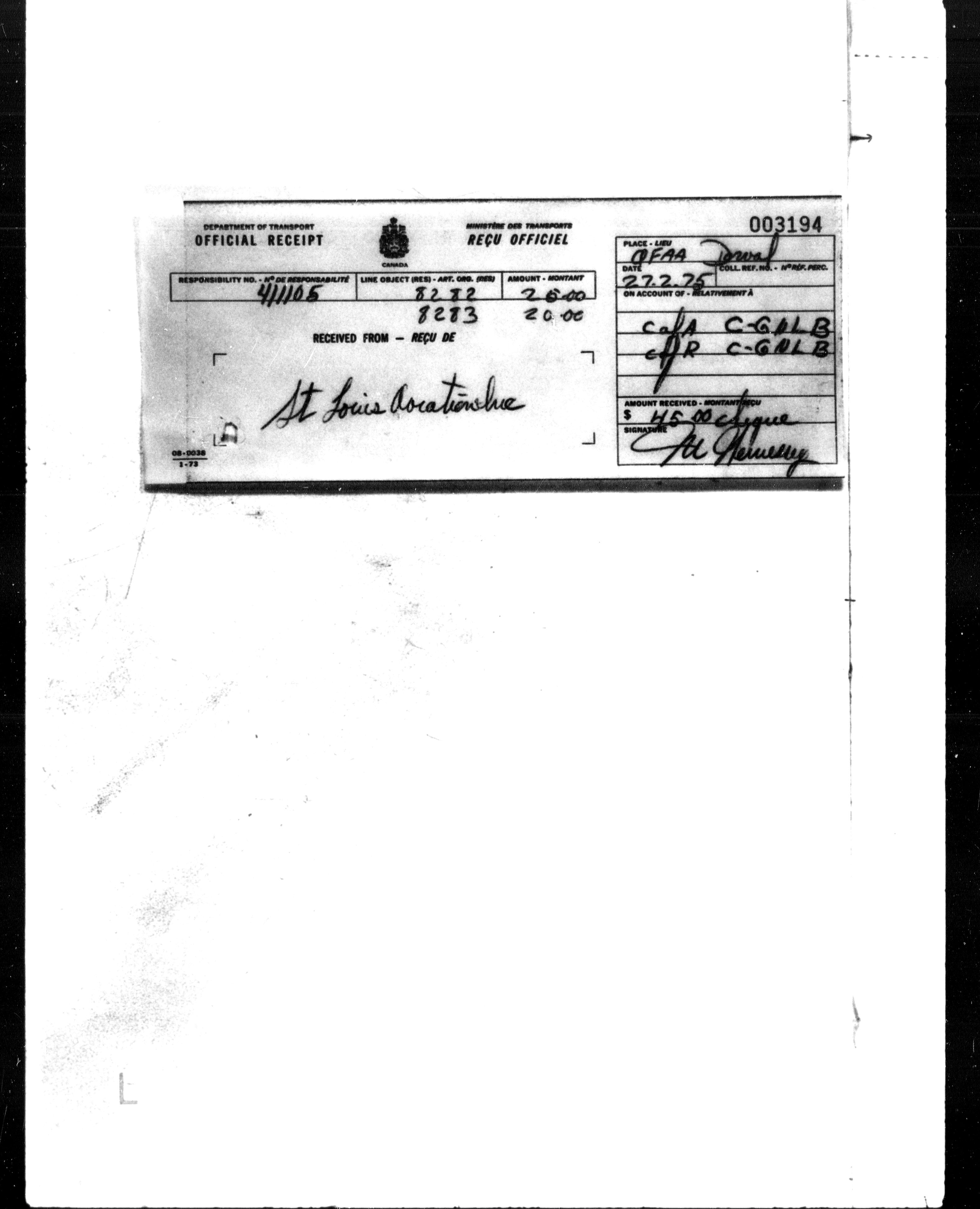 Department of Transport : Civil aircraft registration, inspection and operation files, 1920-1986 : T-7261